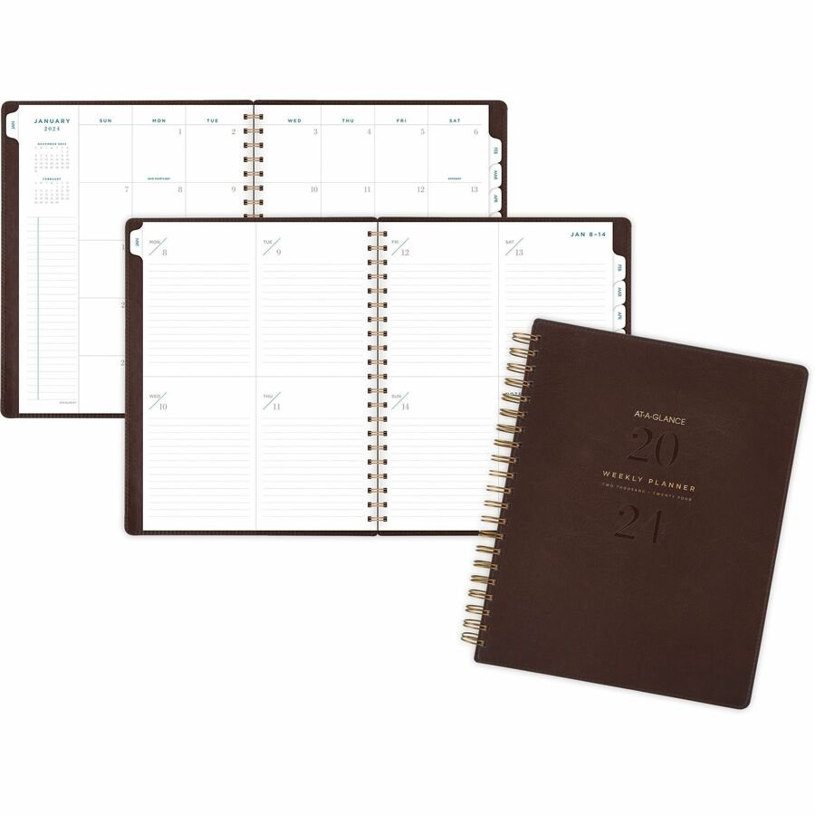 Medium Size – Daily, Monthly – 12 Month – January 2024 – December 2024 – 7:00 AM to 8:00 PM – Hourly – 1 Month, 1 Day Double Page Layout – 7″ x 8 3/4″ White Sheet – Wire Bound – Berry – Faux Leather – Berry – Tabbed, Holiday Listing, Reference Calendar, Event Planning Sheet, Term Dates, Contact Sheet, Double-sided, Interior Pocket, Expense Sheet, Hard Cover – 1 Each