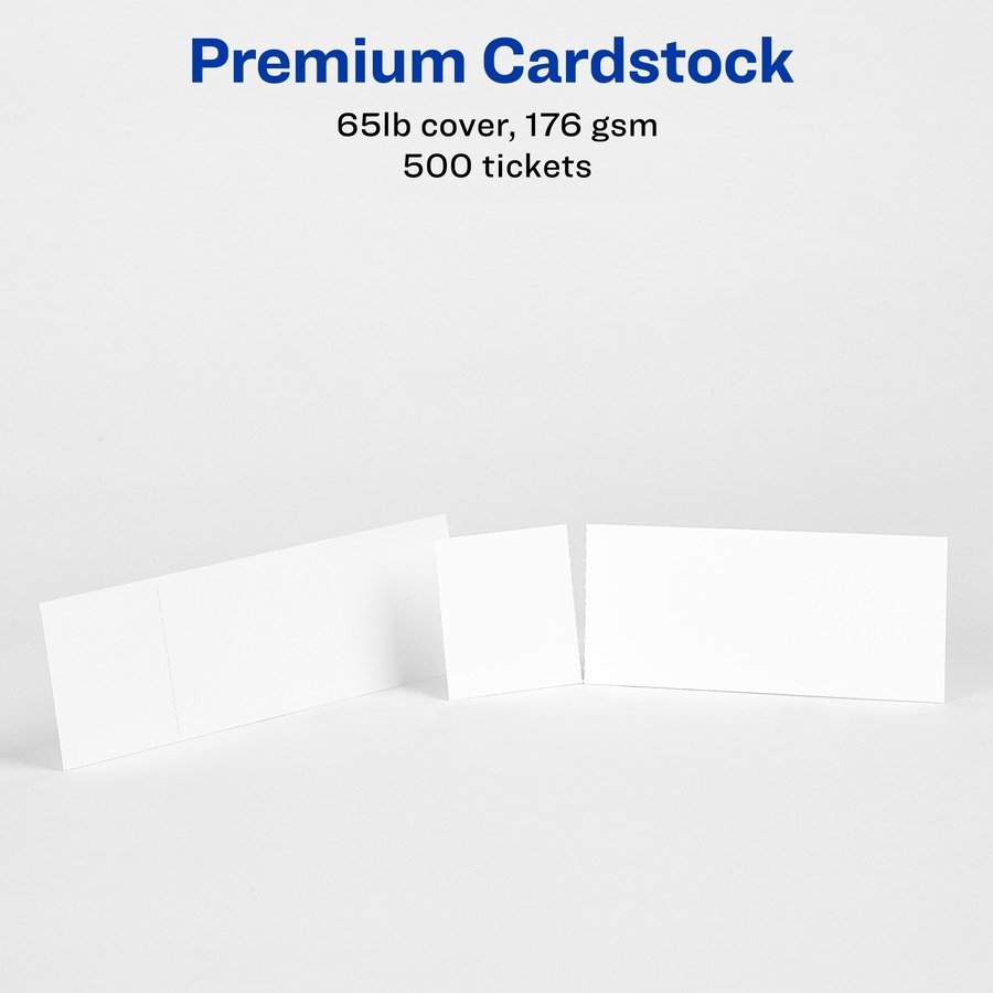 Marketing Information:Design and print your own custom tickets for special events and fundraisers using these printable tickets with tear-away stubs. They are great for raffles, door prizes, dances, school and church events. Strong perforations on the stubs ensure they stay attached until the event. With uncoated matte white surfaces, both sides are printable. Easily customize your tickets with free online templates and designs. Free online templates include sequential ticket numbering. Each sheet includes 10 cards.