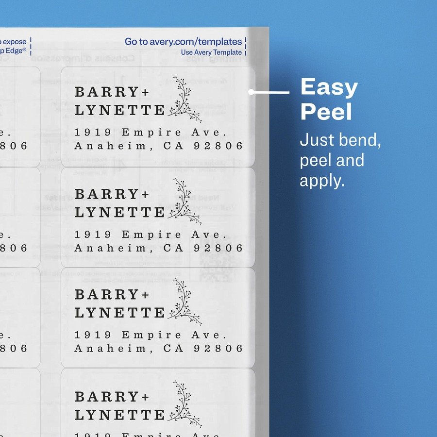 Marketing Information:High-gloss clear labels provide a premium, custom-printed look. They are ideal for bright-colored surfaces. Easy Peel label sheets with address labels bend to expose Pop-Up Edge for fast peeling. Labels are easy to customize with free online templates from Avery Design and Print. Permanent labels are guaranteed to stick and stay. The 8-1/2″ x 11″ sheets are compatible with both laser and inkjet printers.