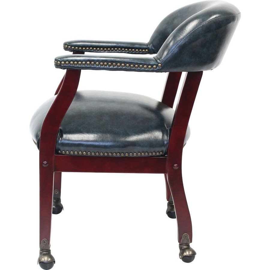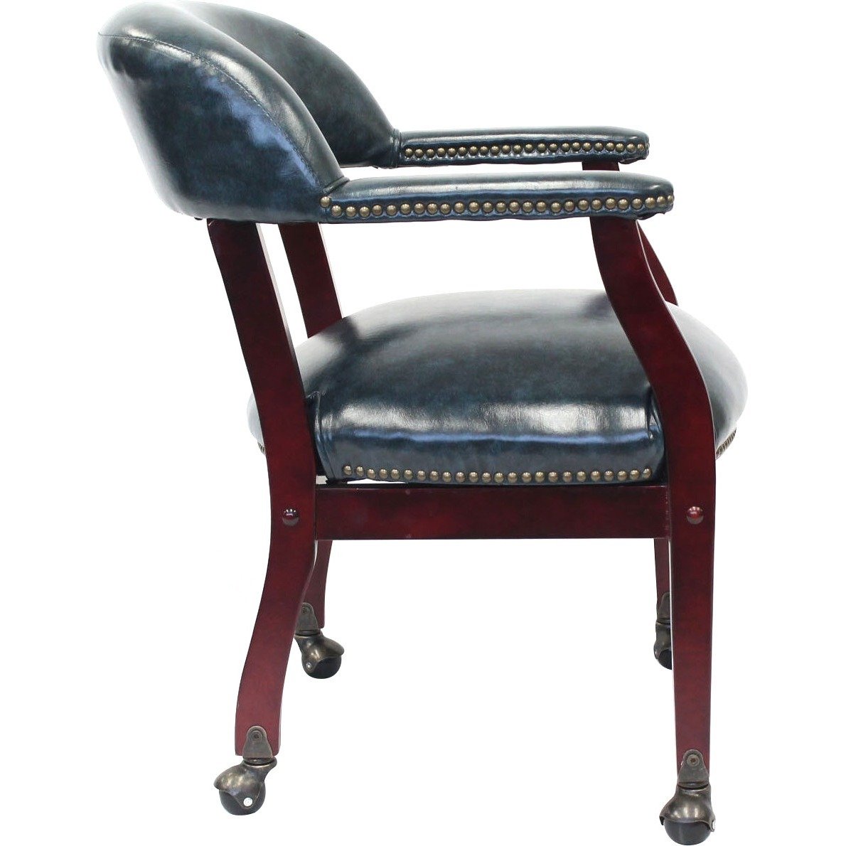Blue Vinyl Seat – Blue Vinyl Back – Mahogany Hardwood Frame – Four-legged Base