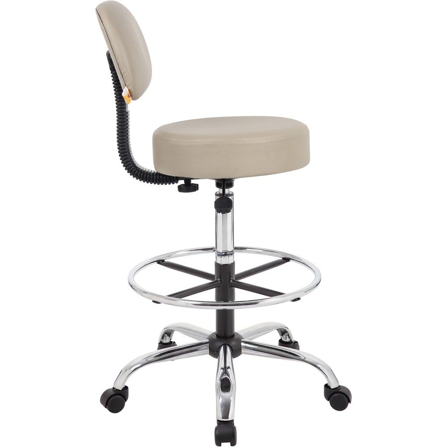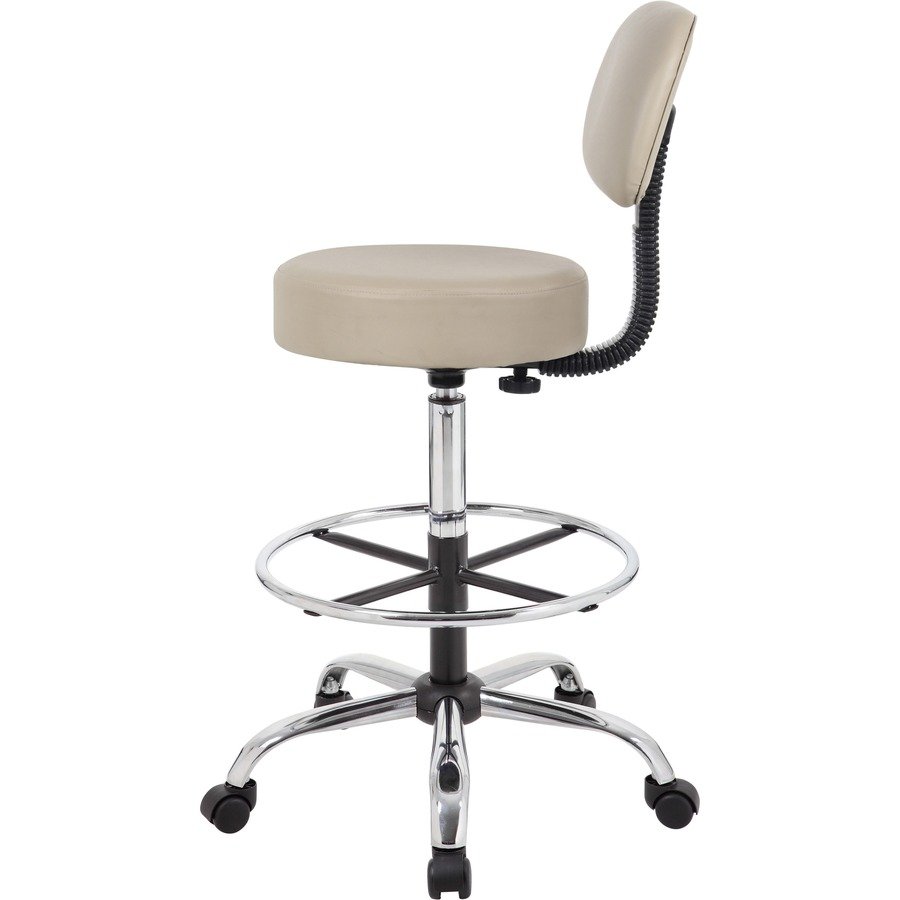 Medical stool is upholstered in Caressoft vinyl to give you the look and feel of leather while allowing it to be easily cleaned with a damp cloth. Durable upholstery covers a 4″ thick, molded foam seat to provide extra comfort and padding. Plush back cushion provides comfortable back support throughout extended periods of work. Easy-to-reach, gas lift lever offers a vertical range of 6″ and makes it easy to modify your height for increased comfort and ergonomic benefit. 20″ chrome footing provides added foot and leg support. Hooded, double-wheel casters slide smoothly on floors to make it easy to move and shift directions. Medical stool supports up to 275 lb.