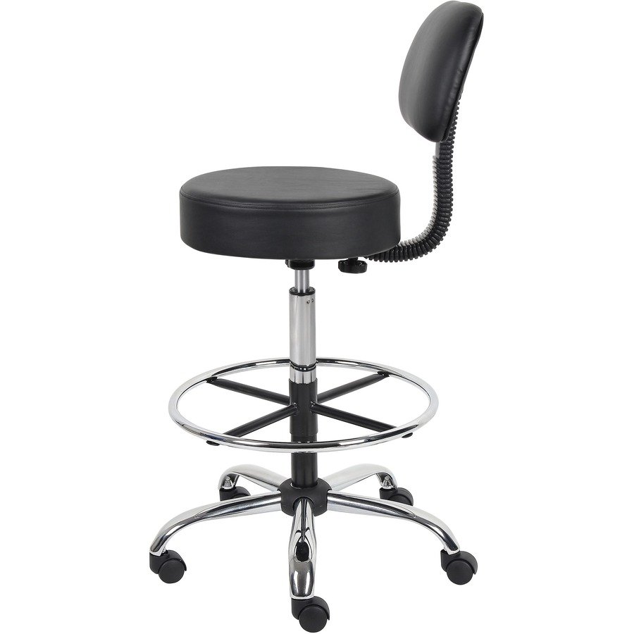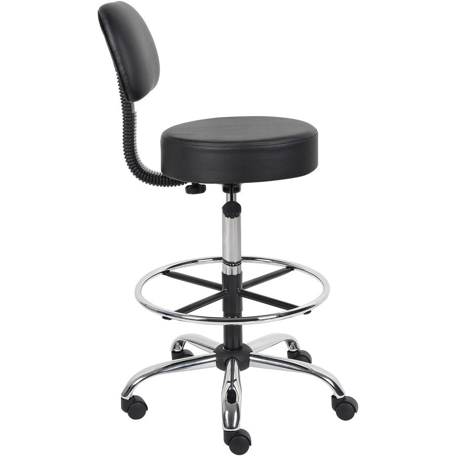 Medical stool is upholstered in antimicrobial Caressoft vinyl to give you the look and feel of leather while allowing it to be easily cleaned with a damp cloth. Durable upholstery covers a 4″ thick, molded foam seat to provide extra comfort and padding. Plush back cushion provides comfortable back support throughout extended periods of work. Easy-to-reach, gas lift lever offers a vertical range of 6″ and makes it easy to modify your height for increased comfort and ergonomic benefit. 20″ chrome footing provides added foot and leg support. Hooded, double-wheel casters slide smoothly on floors to make it easy to move and shift directions. Medical stool supports up to 275 lb.