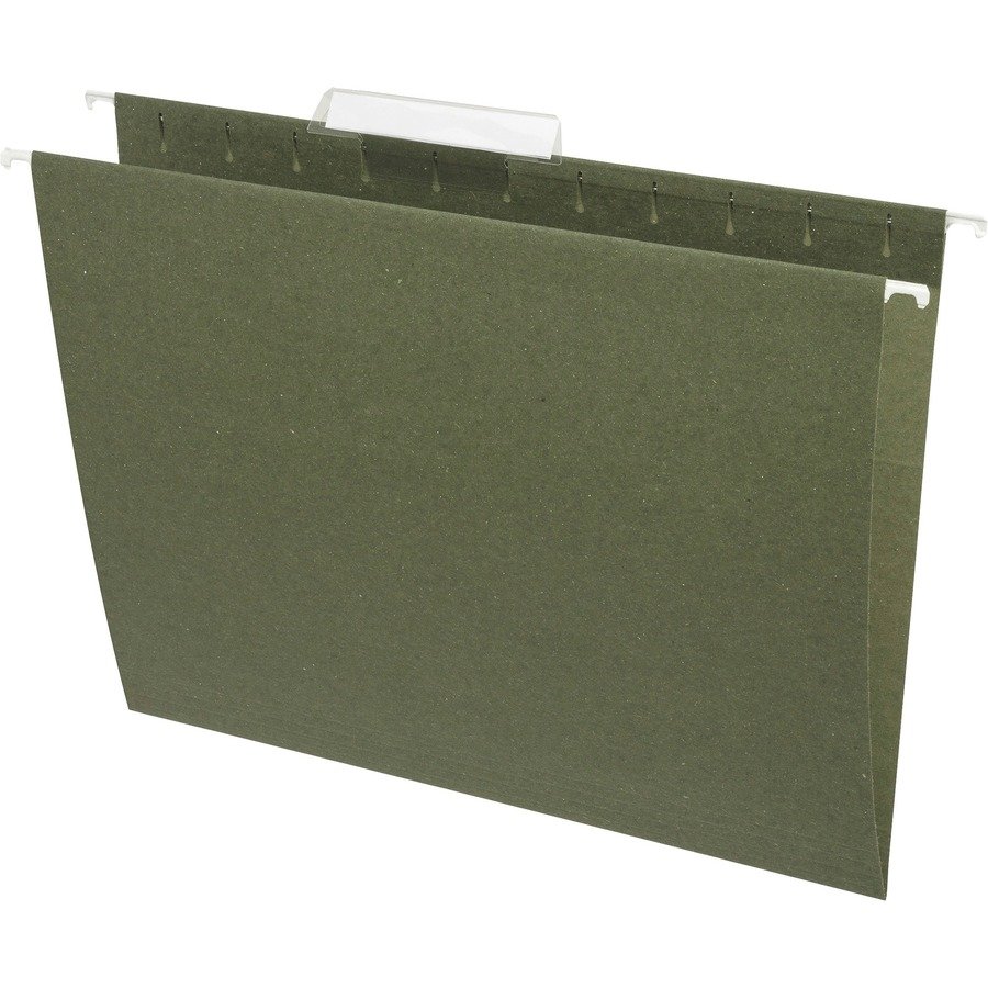 Hanging folders are made with a high percentage of recycled material for the eco-friendly office. The top edges have 1/3-cut slots so you can stagger the included tabs and inserts for quick label identification. Acid-free folders are made with 11 point stock and hold your letter-size documents for efficient organizing.