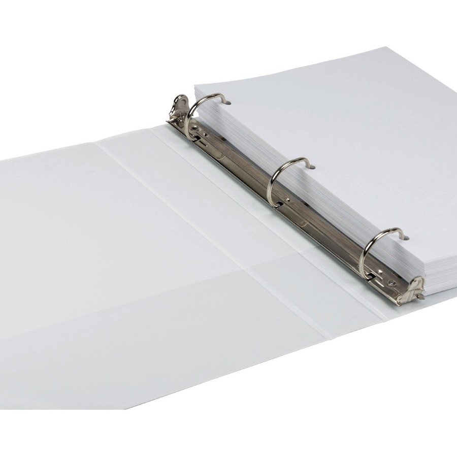 Round-ring view binder offers crystal-clear, nonglare overlays to customize the covers and spine for your letter-size presentations. Back-mounted metal rings allow pages to lie flat. 1″ capacity holds up to 225 letter-size sheets. Clear pockets on the inside covers offer extra document storage with a 30-sheet capacity for each pocket. Design also features a sturdy chipboard core and exposed rivets. Binder is made of polypropylene for durability and resilience.