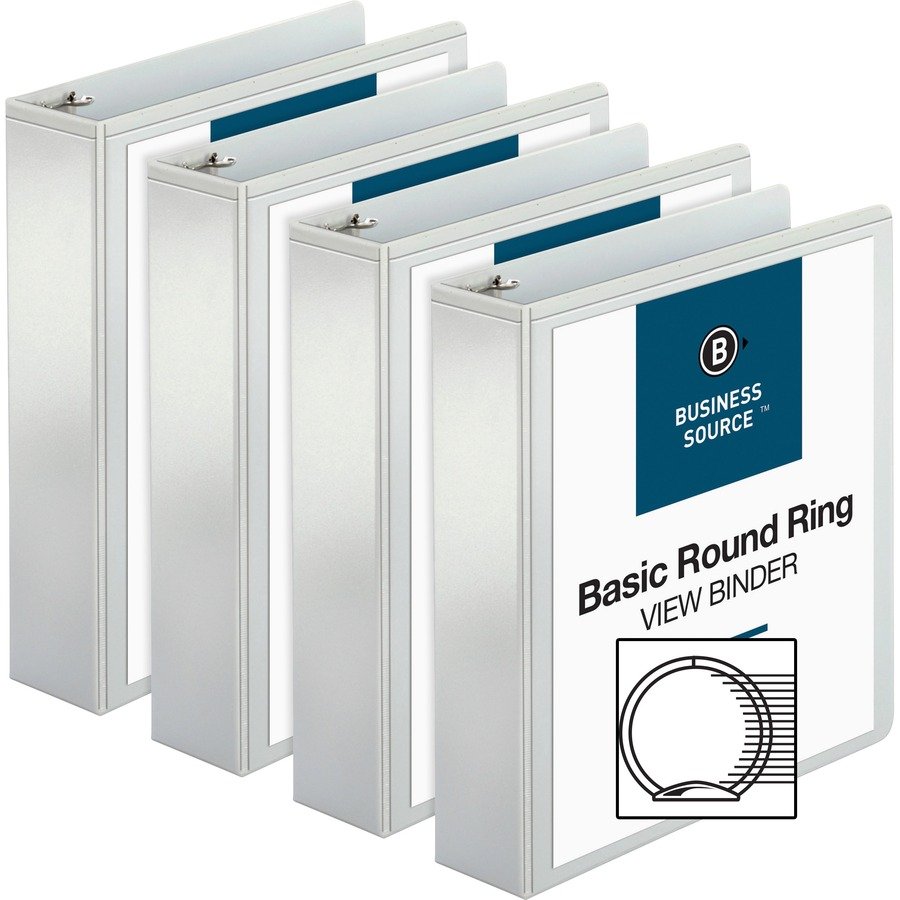 Round-ring view binder offers crystal-clear, nonglare overlays to customize the covers and spine for your letter-size presentations. Back-mounted metal rings allow pages to lie flat. 2″ capacity holds up to 475 sheets. Clear pockets on the inside covers offer extra document storage with a 30-sheet capacity for each pocket. Design also features a sturdy chipboard core and exposed rivets. Binder is made of polypropylene for durability and resilience.