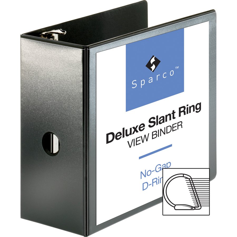 Slant-D ring binder offers superior, professional presentation for a volume of paperwork. It holds 25 percent more paper than the same-size, round-ring binders. 5″ ring capacity holds approximately 975 sheets. For durability and resilience, the cover material and overlays on front, spine and back are made of polypropylene. PVC-free, nonstick poly material resists ink and toner transfer for a clean impression overtime. Superior no-gap rings close securely and resist separation. Steel ringlets are attached to the inside back cover instead of the spine so pages lie flat. Straight-post design makes it easy to load content. Binder also features exposed rivets, a sturdy chipboard core and two clear interior pockets. Each pocket holds 40 sheets.