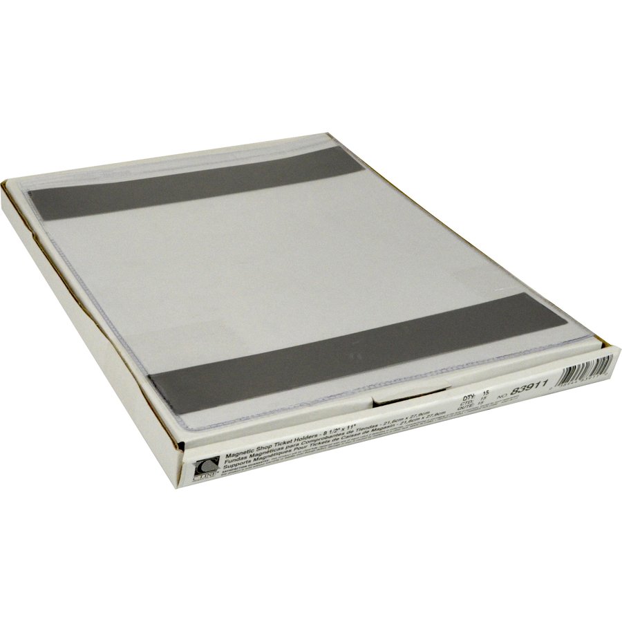 Place these vinyl shop-ticket holders on any metal surface and keep job tickets at your fingertips. Perfect for attaching to machinery, file cabinets, racking and more. Shop ticket holders feature a magnetic backing to attach to metal surfaces. Welded, nonrip seams deliver added durability.