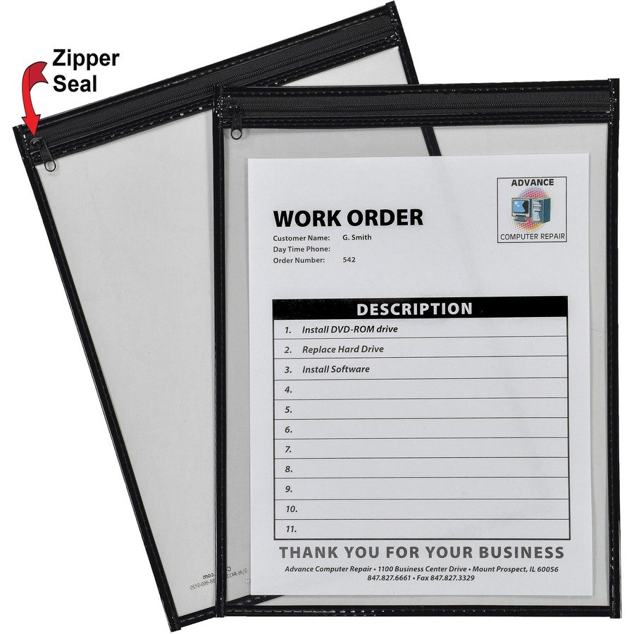 Shop ticket holders make your special jobs stand out. Heavy-duty vinyl is transparent for complete front and back visibility. Reinforced header and stitched seams ensure long-lasting performance. Three eyelets allow multiple hanging positions for convenient display. Shop ticket holders are perfect for organizing work by department, day-of-the-week or importance.