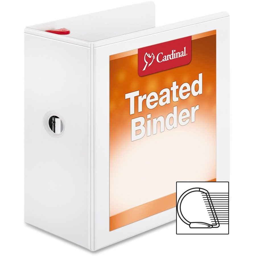 ClearVue Locking Slant-D Binder features antimicrobial properties built-in to protect the product. Locking Slant-D Rings with GelTab Triggers hold 25 percent more letter-size paper than standard round rings. 5″ ring capacity holds approximately 1,100 sheets. Back-mounted rings provide a clean, professional spine and reduce wear. Clear, nonglare, nonstick overlays on front, back and spine allow easy insertion of custom title sheets or graphics. Free templates are available online to customize title pages. View binder also offers horizontal pockets on the interior front and back covers for additional storage. Each pocket holds 40 pockets. Binder also features polypropylene construction, exposed rivets and a sturdy chipboard core.