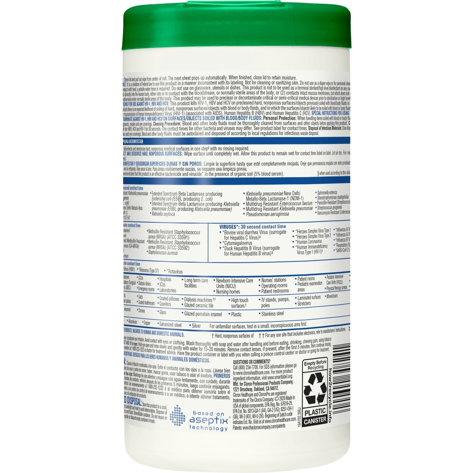Clorox Healthcare Hydrogen Peroxide Cleaner Disinfectant Wipes kill microorganisms quickly on a broad range of surfaces. These strong, durable wipes are a one-step solution to cleaning and disinfecting. They cover greater surface area with fewer wipes for better value and less waste. They are EPA-registered to kill pathogens on hard and soft surfaces in as fast as 30 seconds for most bacteria and viruses. These hydrogen peroxide wipes meet EPA criteria for use against SARS-CoV-2, the virus that causes COVID-19. Designed for patient and staff comfort, these wipes are formulated with no harsh chemical odors, fumes or added fragrances. They are intended for use in commercial settings.