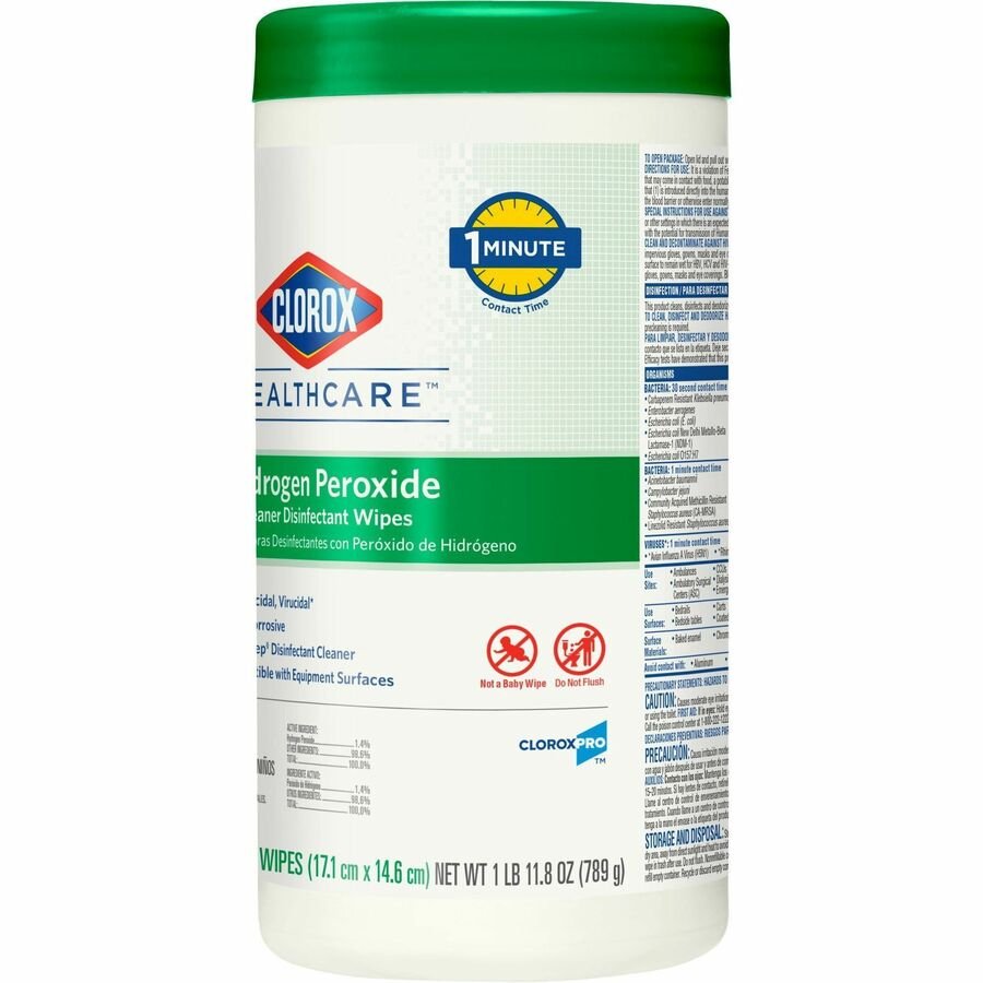 Clorox Healthcare Hydrogen Peroxide Cleaner Disinfectant Wipes kill microorganisms quickly on a broad range of surfaces. These strong, durable wipes are a one-step solution to cleaning and disinfecting. They cover greater surface area with fewer wipes for better value and less waste. They are EPA-registered to kill pathogens on hard and soft surfaces in as fast as 30 seconds for most bacteria and viruses. These hydrogen peroxide wipes meet EPA criteria for use against SARS-CoV-2, the virus that causes COVID-19. Designed for patient and staff comfort, these wipes are formulated with no harsh chemical odors, fumes or added fragrances. They are intended for use in commercial settings.
