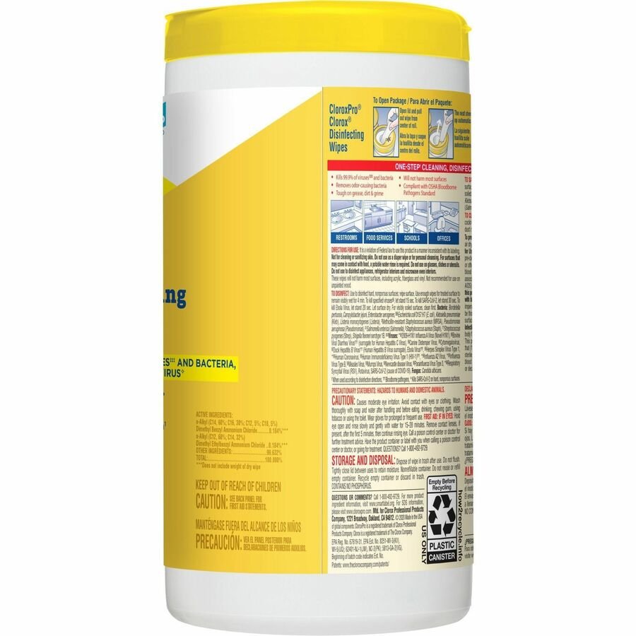 Marketing Information:Clorox Disinfecting Wipes clean and disinfect in one easy step. These sanitizing wipes are EPA-registered to kill 99.9 percent of germs including cold and flu viruses, E. coli, Salmonella, Staph, Strep, MRSA, SARS-CoV-2 and the organism that can cause whooping cough. They also remove common allergens like pet dander, pollen particles and grass. One antibacterial wipe can kill bacteria in just 10 seconds – three times faster than before. Premoistened, thick, textured wipes are perfect for spills and dirt on a variety of hard, nonporous surfaces including acrylic, glass and vinyl. They quickly clean and disinfect high-touch, germ hot spots such as doorknobs, handrails and faucets and are suitable for use on phones, keyboards and mice. Wipes are ideal for offices, daycare centers, schools, hotels, restaurants and other commercial facilities. Packaging may vary.