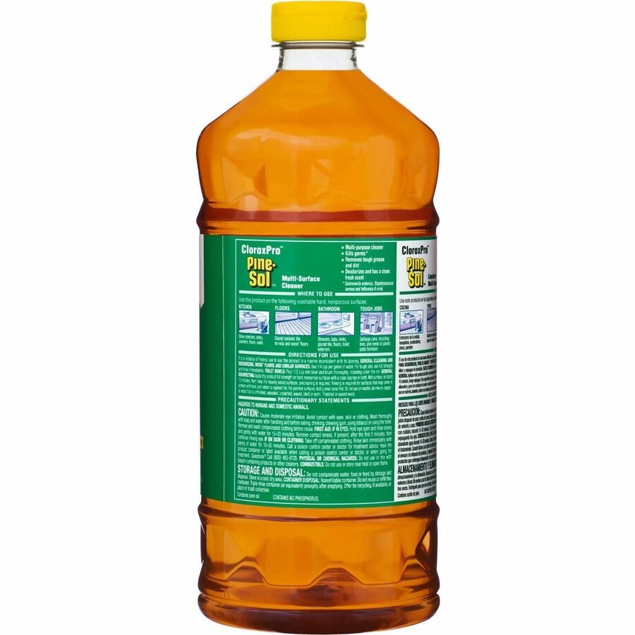 With Pine-Sol Multi-Surface Cleaner from CloroxPro, you only need one cleaner to fight dirt, grime and grease. EPA-registered formula disinfects and kills 99 percent of germs on most surfaces throughout your office. The advanced solution gives you four times the cleaning action and a great, long-lasting scent. It deodorizes and wipes out odor-causing bacteria while leaving a pleasant pine scent. This concentrated cleaner can tackle any challenge by simply mixing with water at different strengths to adjust your cleaning power each time, unlike premixed cleaners. Cleaner is safe use on most hard, nonporous surfaces, including finished hardwood, ceramic tile, linoleum and plastic. Pine-Sol Original Pine can be used to freshen laundry. It is ideal for use in schools, daycare centers, restaurants, hotels and other commercial facilities. Packaging may vary.