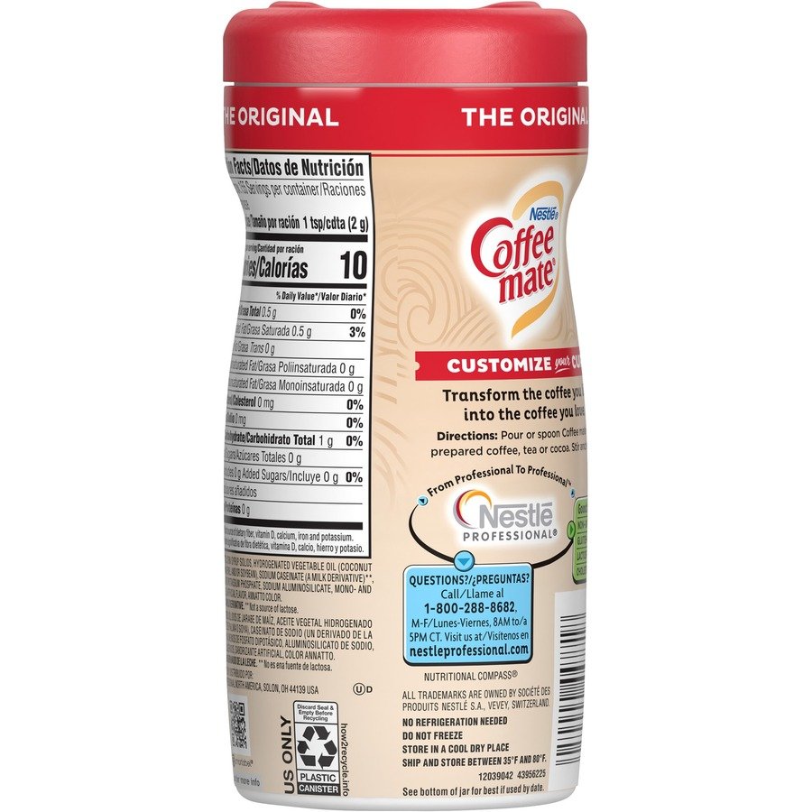 Delight your employees, customers and guests by offering Coffee mate powdered creamer in your workplace, breakroom or kitchen. Original powdered creamer is a rich and delicious, creamy, nondairy creamer that delivers a consistently perfect cup. Served in a multi-serve canister, this powdered creamer is an economical creamer solution for the budget-conscious. With this popular brand of creamer in the office, everyone can enjoy coffeehouse indulgence without ever leaving the building. Creamer is Kosher Dairy, lactose-free and cholesterol-free.