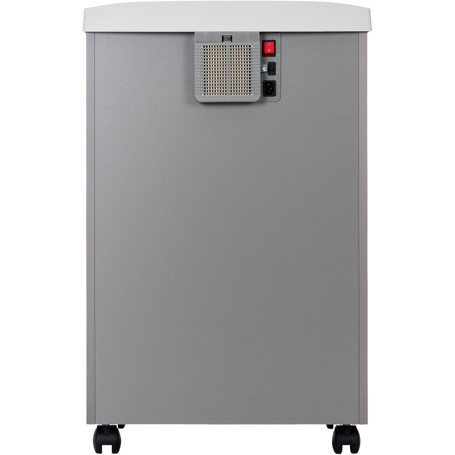 Non-continuous Shredder – Cross Cut – 18 Per Pass – for shredding Staples, Paper Clip, Credit Card, CD, DVD – 0.125″ x 1.563″ Shred Size – P-4 – 18 ft/min – 10.25″ Throat – 10 Minute Run Time – 20 Minute Cool Down Time – 23 gal Wastebin Capacity – 1416.83 W – Gray