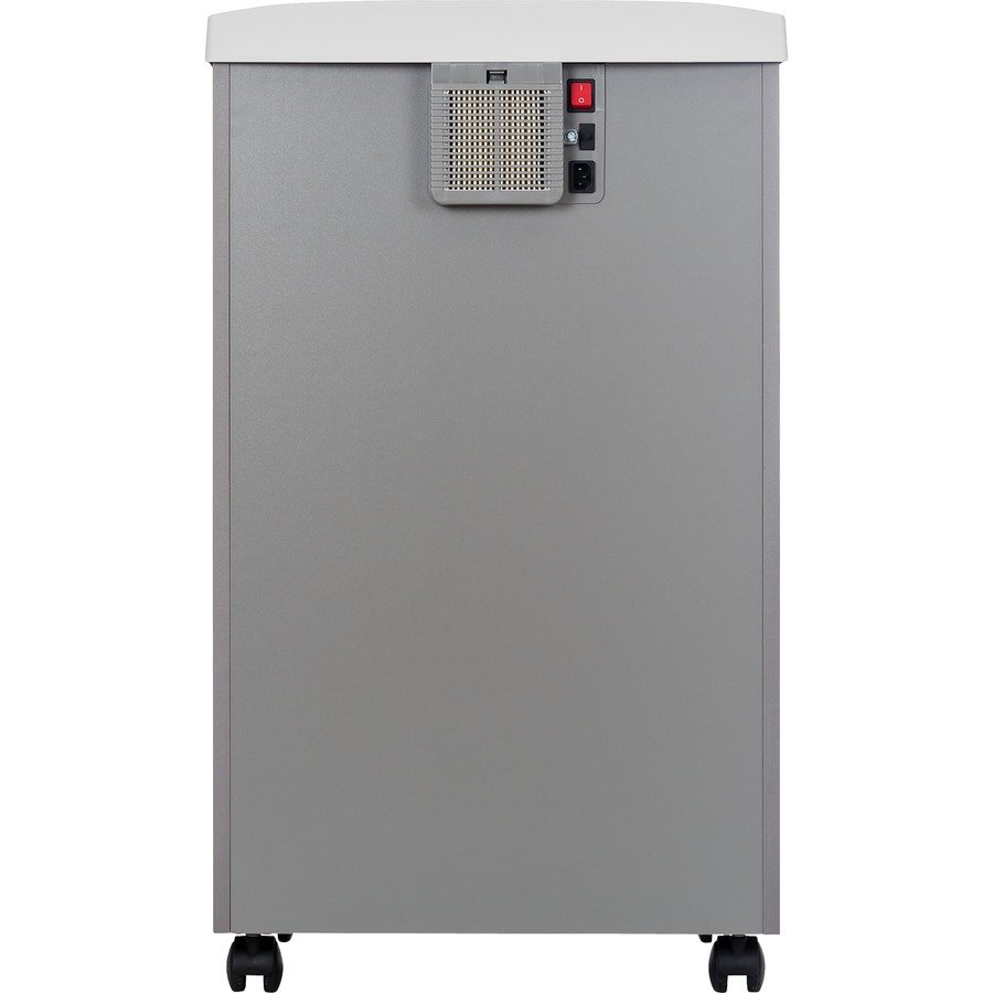 Non-continuous Shredder – Cross Cut – 20 Per Pass – for shredding Staples, Paper Clip, Credit Card, CD, DVD – 0.125″ x 1.563″ Shred Size – P-4 – 18 ft/min – 10.25″ Throat – 10 Minute Run Time – 20 Minute Cool Down Time – 30 gal Wastebin Capacity – 1416.83 W – Gray