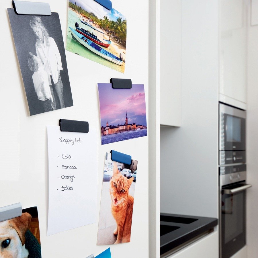 Attach documents quickly and easily with the Durafix Clip. Simply stick the magnet to your chosen surface, open the clip, place the note inside and close. Self-adhesive attachment can be secured to smooth surfaces such as cabinets, fridges, glass doors and more. Self-adhesive will not leave a residue when removed. Versatile design allows you to attach it on the side or top of surfaces depending on your space.
