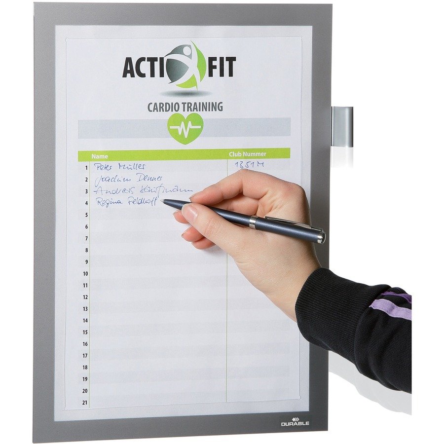 Sign Holder features a magnetic frame to instantly create professional-looking signs and displays. Transparent surface allows the insert to be read from both sides. Sign holder can be used in either landscape or portrait formats. Special adhesive attaches to any smooth, solid surface and removes cleanly. Sign holder is perfect for showcasing procedures, frequently referenced materials, office news, email and phone number lists, schedules, calendars, pictures, goal charts, awards, events and more.