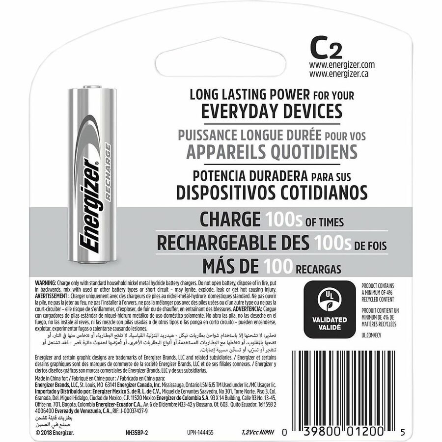 • For best results, pair with innovative Energizer chargers