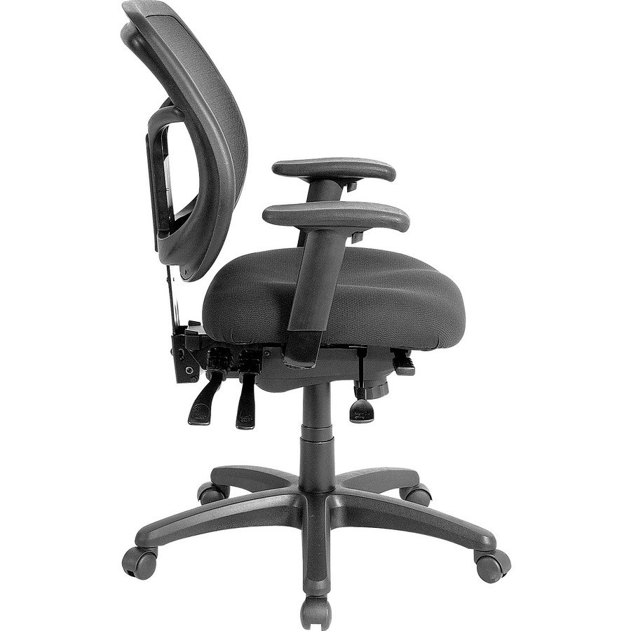 Marketing Information:Apollo Multifunction Task Chair features a ratchet back that moves up or down relative to the seat for lumbar support and comfort. Mesh back provides enhances airflow for breathability. Set seat back at an angle for personalized comfort in reclined position. Seat-height adjustment lets you position the seat height relative to the floor. Chair rocks back and forth with adjustable, center-tilt mechanism. Dillon vinyl-upholstered, padded waterfall seat with sloping front reduces pressure on the back of the knees. Tilt-tension control with tilt lock allows you to adjust the recline rate based on your weight. Seat tilts forward to change the angle for a comfortable position when you’re using a keyboard. Arm-height adjustment adjusts arm up or down while arm pads angle in or out. Nylon, five-star base features casters for easy mobility. Chair is Greenguard certified to have low chemical emissions.