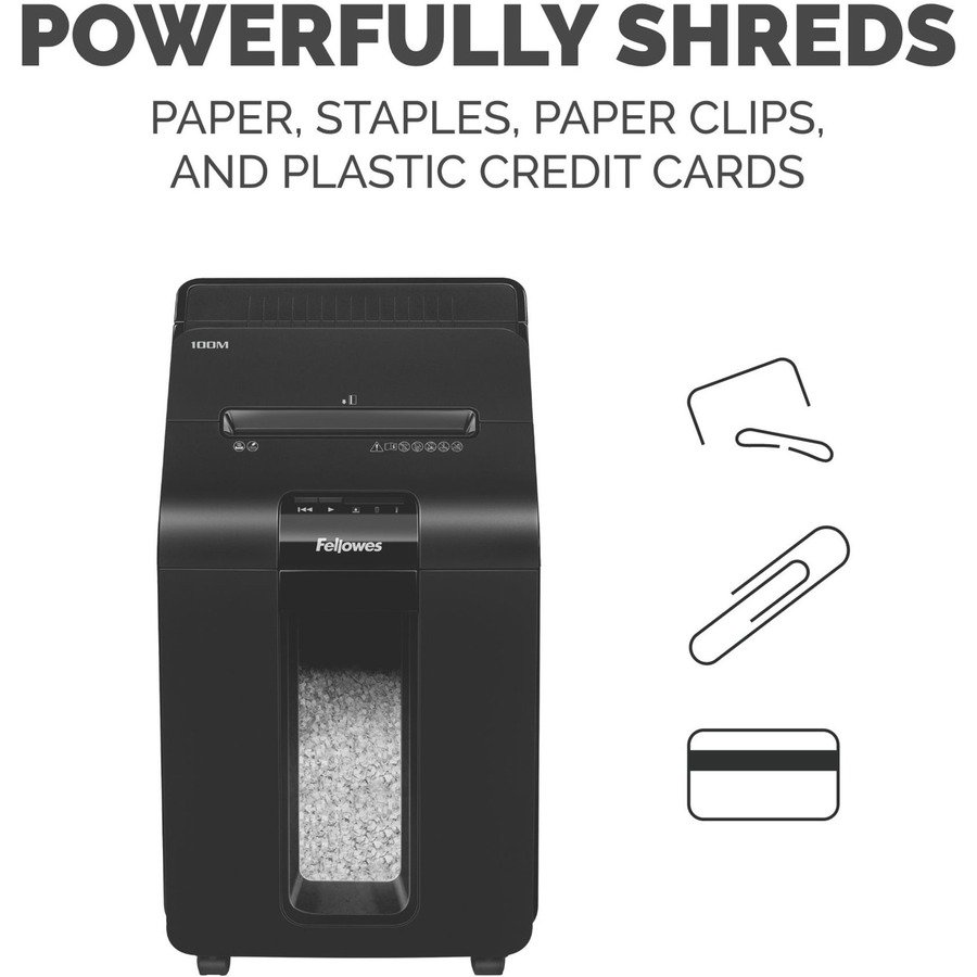 Non-continuous Shredder – Micro Cut – 100 Per Pass – for shredding Paper, Staples, Credit Card, Paper Clip – 0.156″ x 0.391″ Shred Size – P-4 – 8 ft/min – 8.62″ Throat – 15 Minute Run Time – 6 gal Wastebin Capacity – Black