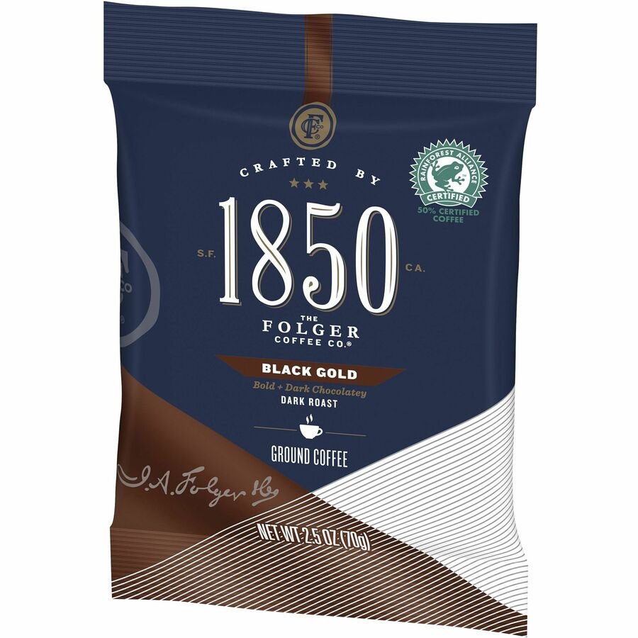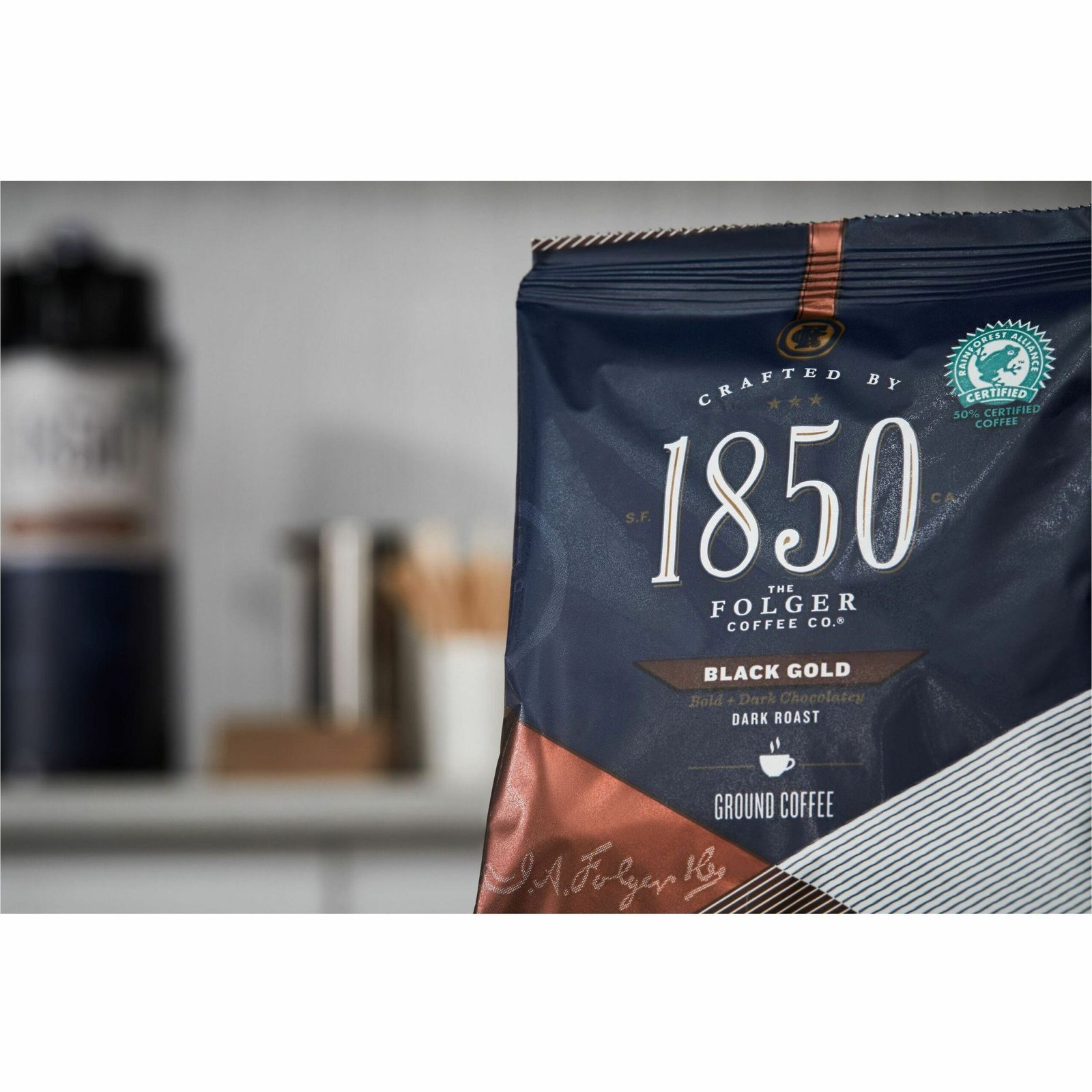 Start your day off bold with 1850 Black Gold Dark Roast Ground Coffee. Made with a smooth blend of 100 percent Arabica beans, this dark-roast coffee reveals notes of dark cocoa in every sip. These coffee beans are fire-roasted to evenly deliver distinct flavor with less bitterness and steel-cut into a precise particle size for a more consistent brewing experience.