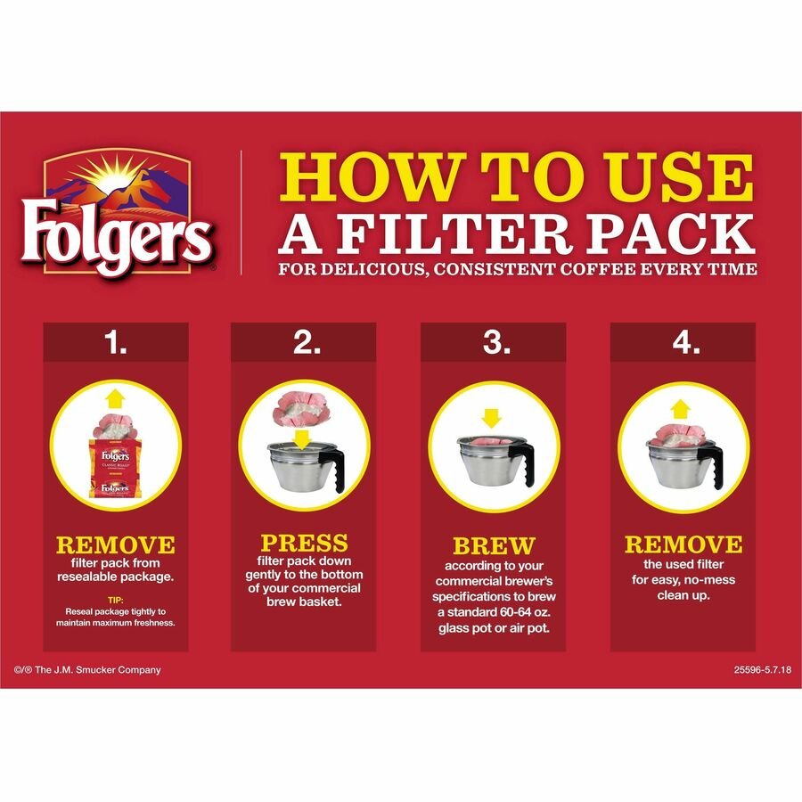 Filter Packs are a low-touch, convenient way to deliver coffee employees love. By brewing premeasured coffee grounds in a sealed filter, potential points of contact with grounds are eliminated. The rich flavor of Folgers is more than just coffee – it’s tradition. A popular medium-roast, Folgers Classic Roast is carefully blended with the world’s richest and most aromatic beans, delivering rich flavor and balanced character cup after cup.