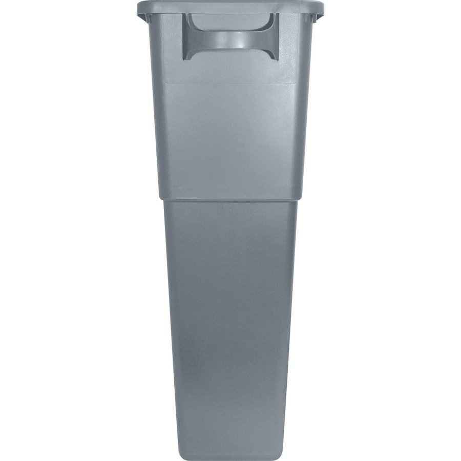 Space-saving Waste Container holds 23 gallons of trash, but protrudes less than 1′ from the wall. Sleekly designed container fits under most work tables. Built-in handles allow easy transport and emptying. Waste container includes a built-in bag cinch. A 20-1/4″ wide Genuine Joe lid fits neatly on the 20″ wide opening and is sold separately.