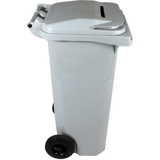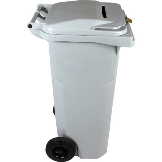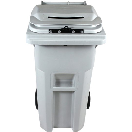 Secure collection cart is conveniently designed for use in an office with in-house shredders. Slot provides a convenient insertion point for confidential documents that need to be shredded. Built-in hasp allows you to easily lock with confidence. Two large wheels move the cart where you need it.