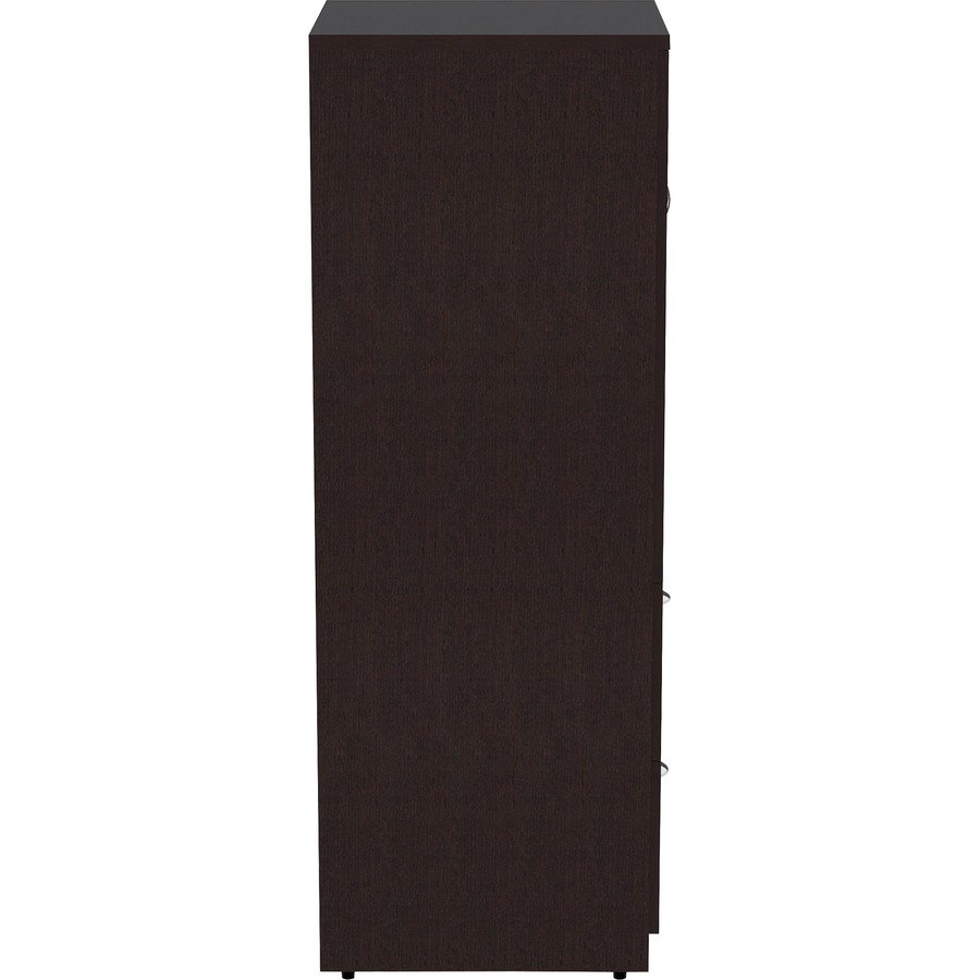 23.6″ x 23.6″ x 65.6″ Cabinet – 2 x File Drawer(s) – 1 Door(s) – 2 Shelve(s) – Material: Laminate, Medium Density Fiberboard (MDF), Particleboard – Finish: Espresso
