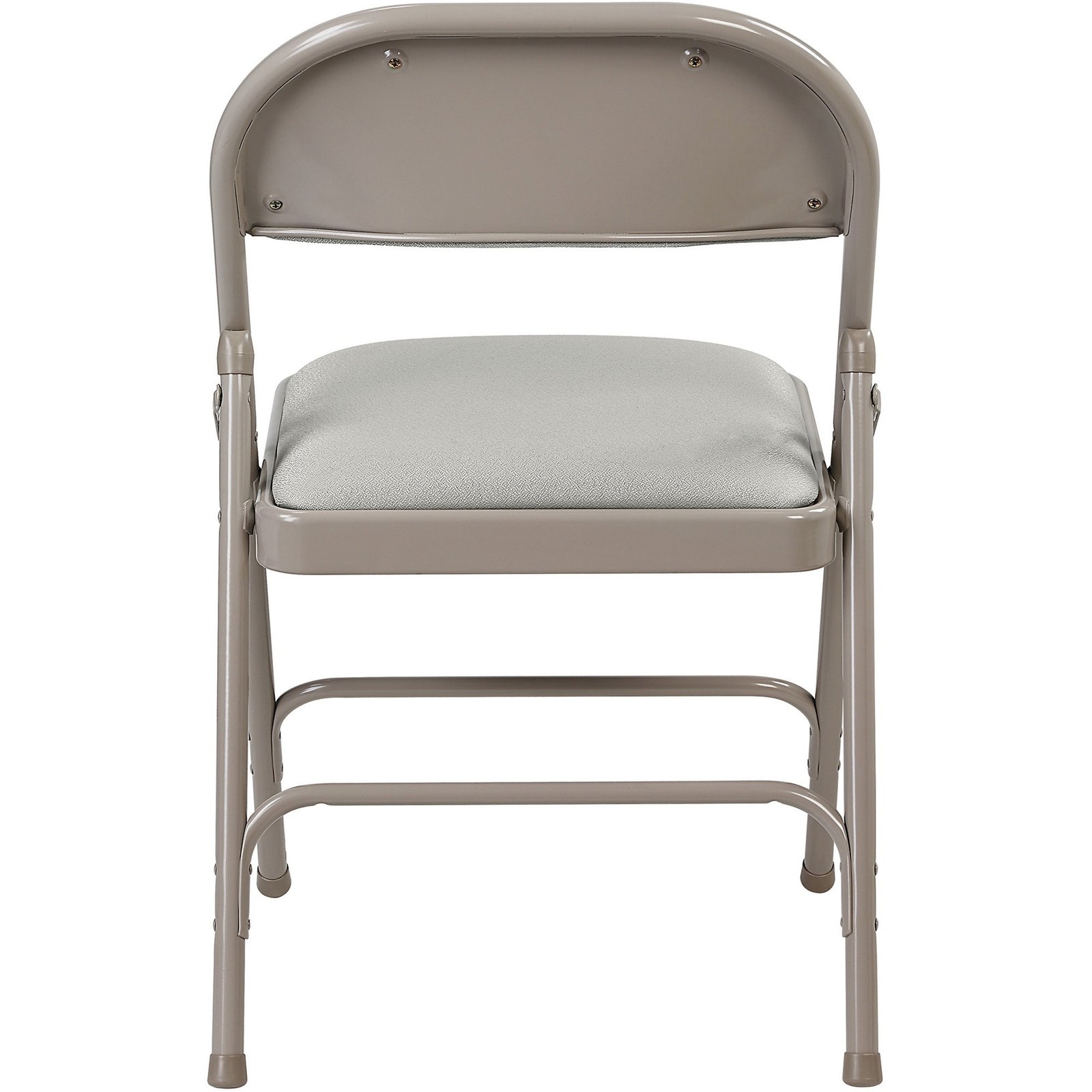 Folding chair features enhanced comfort with padded seat and back upholstered in fabric. Riveted U-braces between front and back legs and powder-coated steel frame offer extra support. Weight capacity is 225 lb. 7/8″ tubular frame with 5/8″ leg connecting tube offers a lightweight design for easy setup. Endcaps on the legs protect floor surfaces.