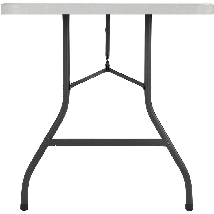Rectangular banquet table is designed for light-duty use indoors or outdoors. The 1-1/2″ thick, square-edge top is made of blow-molded, high-density polyethylene for a sturdy surface. 1″ tubular steel legs are powder-coated for durability. Banquet table holds up to 600 lb. evenly distributed.
