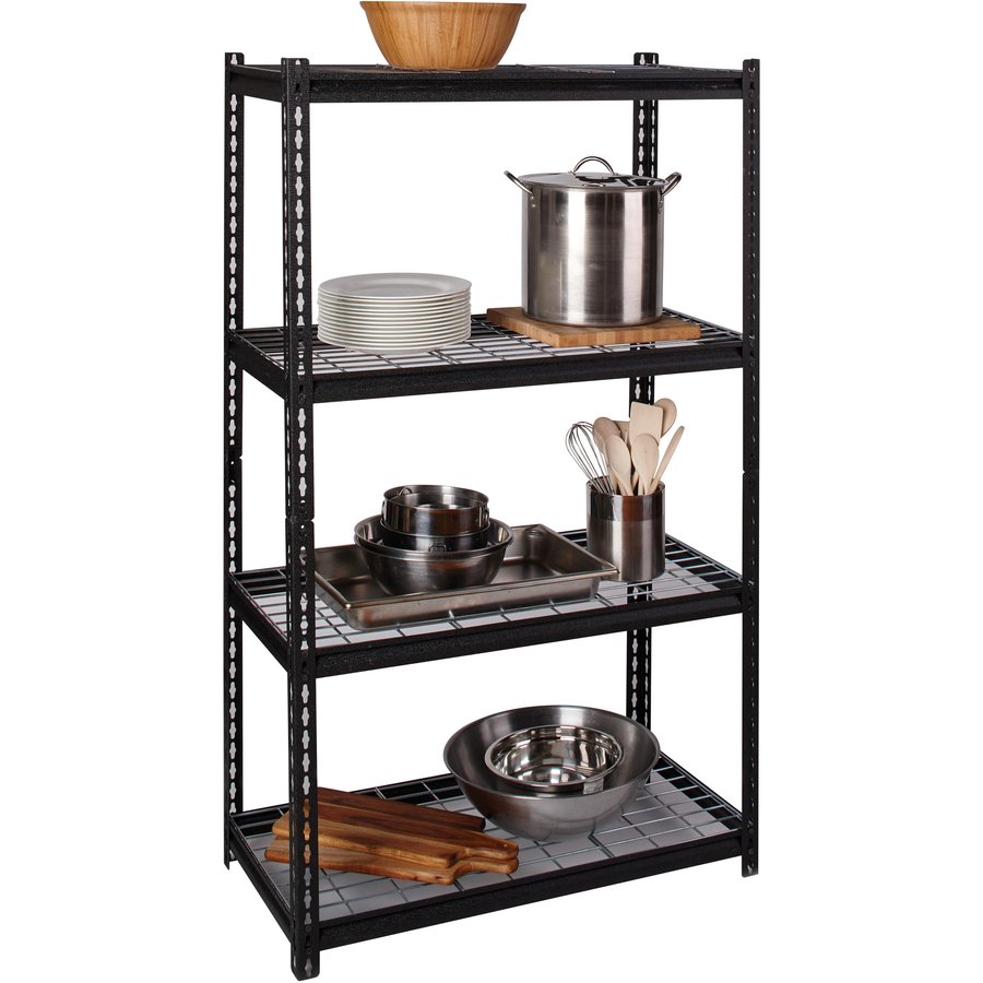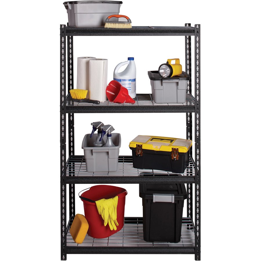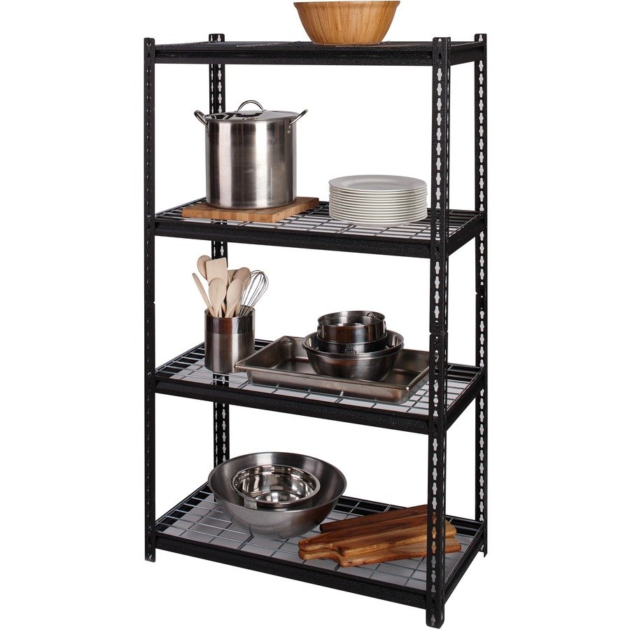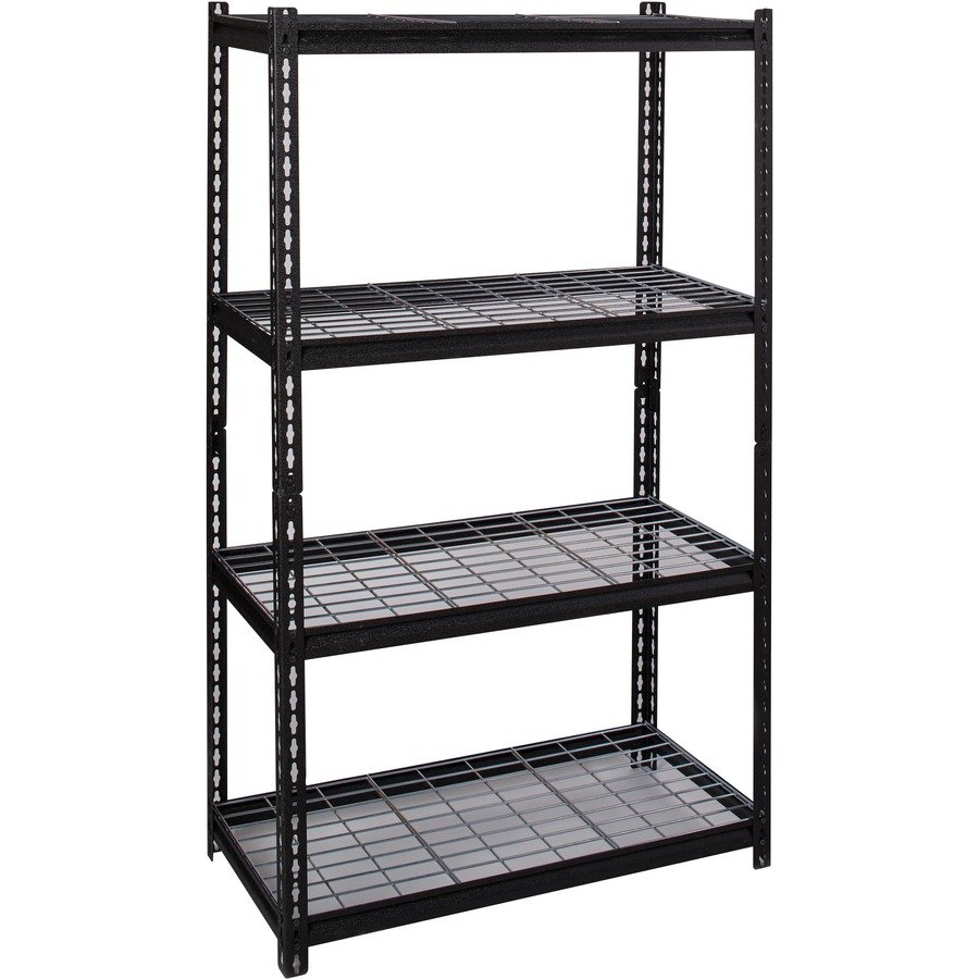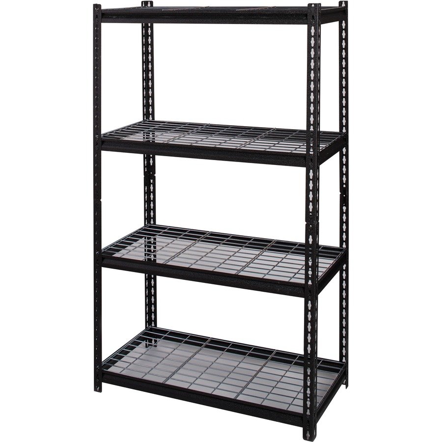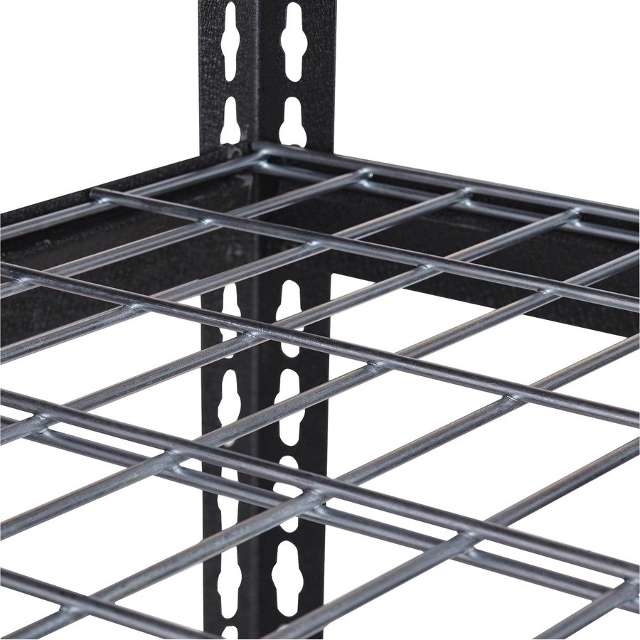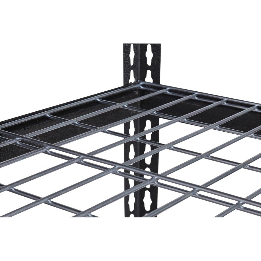 Wire Deck Shelving features a boltless design for easy assembly and professional appearance. It holds a total capacity of 2300 lb. evenly distributed on its four shelves. Each shelf supports 460 lb. Easy-to-clean shelves are supported by a heavy-duty steel frame with a rust-resistant, powder-coat finish for durability. Shelving assembles vertically or horizontally with a rubber mallet.