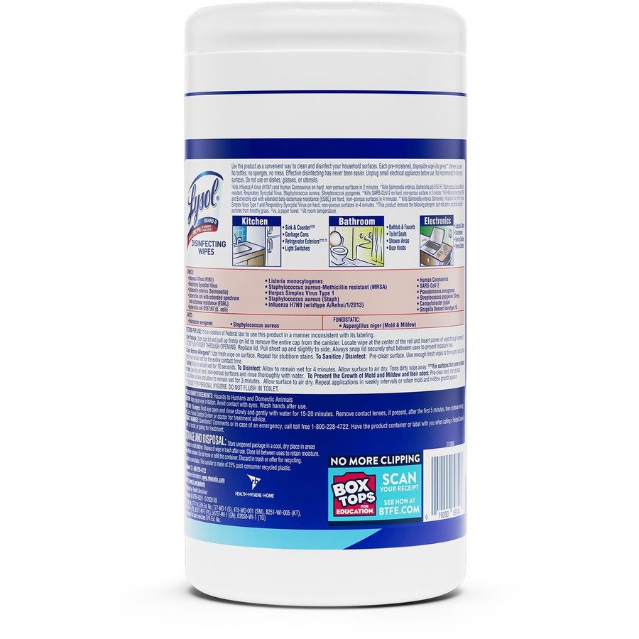 Boost customer confidence with the recognizable canister of Lysol Disinfecting Wipes that are ideal for high-visibility locations. Pre-moistened disinfecting wipes kill 99.9 percent of viruses and bacteria, including the virus that causes COVID-19, when used as directed on hard, nonporous surfaces. Hospital-type disinfection works on a variety of surfaces, including electronics. Quickly clean and disinfect high-touch, germ hot spots to help protect your customers and staff. Clean up and keep moving with packaging that’s easy to open, dispense and store.