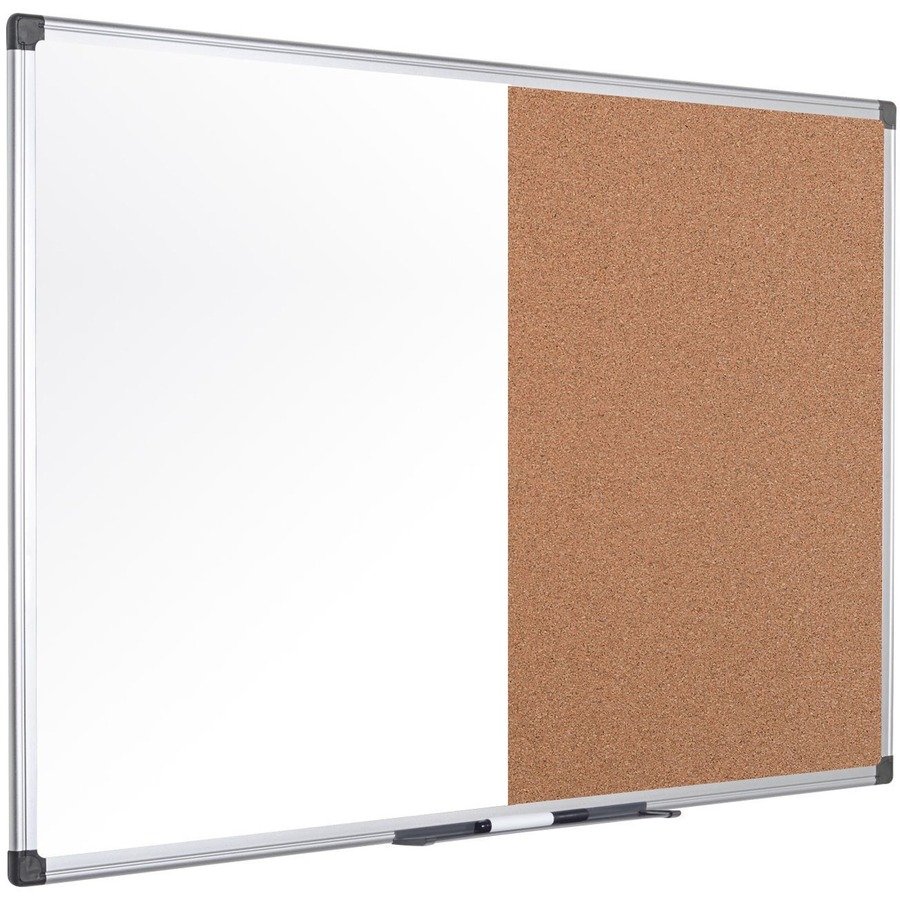 Combination board features both a cork surface and dry-erase surface to easily display items or write down anything you need. Self-healing, resilient cork surface prevents showing pinholes to provide years of use. Melamine easy-clean surface wipes down quickly for clean updates. Included fasteners allow you to mount the board either vertically or horizontally for convenient placement in your work space.