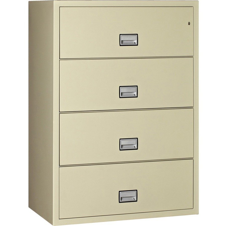 Marketing Information:World Class Lateral File combines powerful protection and heavy-duty storage to meet your filing needs. Fire-resistant feature outlasts the harshest flames up to 1 hour. Individual drawer insulation prevents closed drawers from fire if one is left open. It also resists explosions up to 2000 degrees Fahrenheit and survives drops up to 30′. Labyrinth sealing system and special gaskets prevent water damage. Lateral file is MTC Grade B rated to protect CDs, DVDs, USBs and memory sticks. Easily access files using recessed drawer pull. Key-operated plunger lock provides security. Customize privacy by locking any drawer. All four drawers are equipped to handle legal-size/letter-size folders from front to back or side to side. Drawers use three-way suspension for stability and feature an anti-tip safety mechanism that prevents opening more than one drawer at a time.
