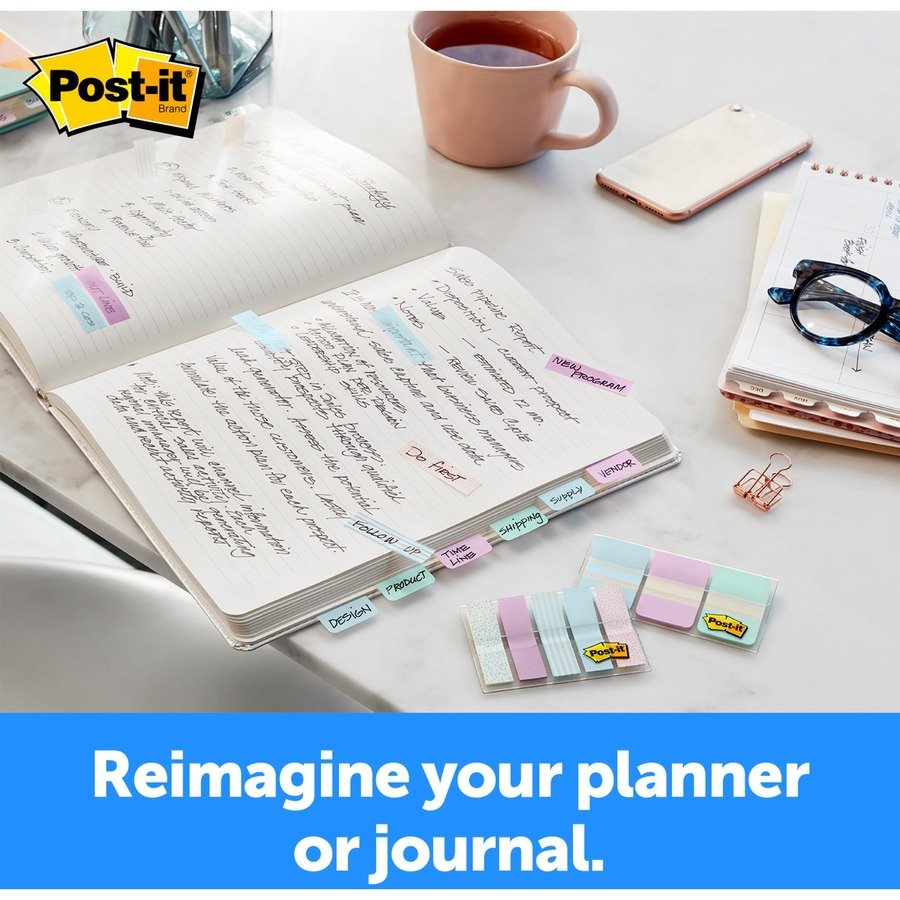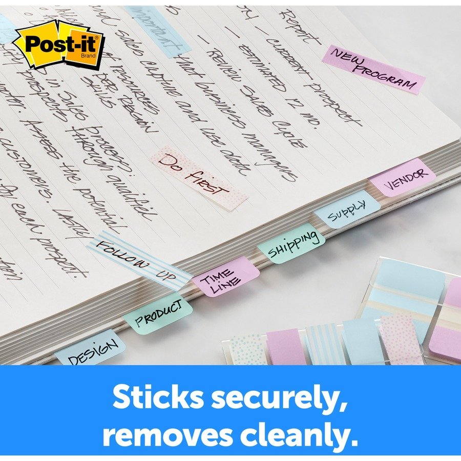 The Post-it Tabs fit right into your day planner to add design and make your important information stand out. Pastel colors offer new ways to personalize your notes. They work great for planners, binders, file folders and textbooks as they stick securely but remove cleanly. 1″ tabs offer plenty of space for labeling. Included convenient dispenser dispenses one tab at a time.