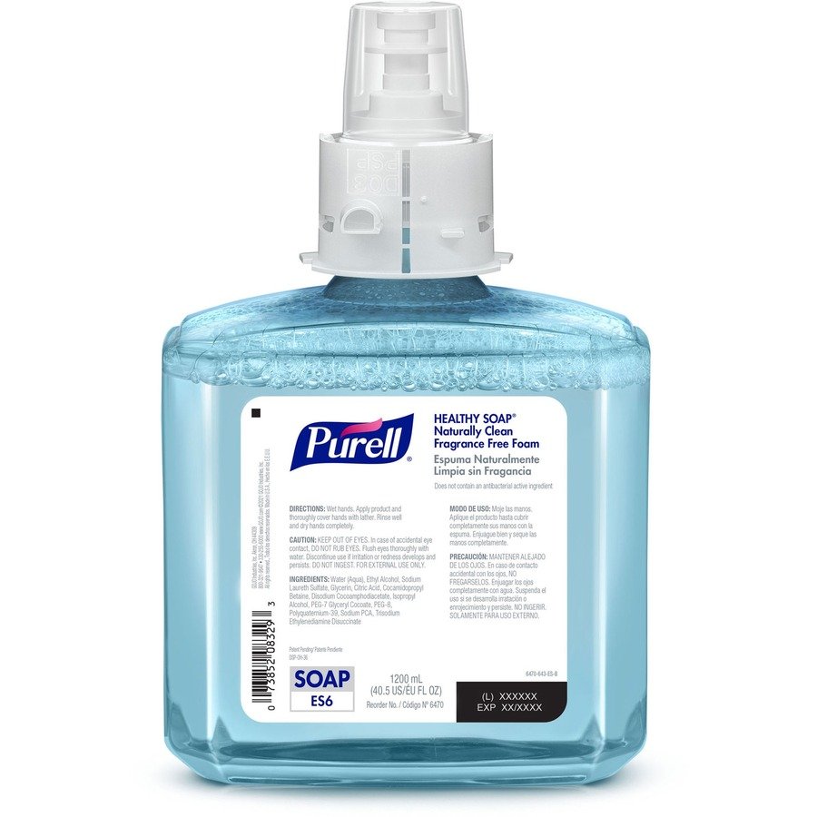 Marketing Information:Designed for your PURELL ES6 Touch-Free Soap Dispenser, this remarkably mild formulation removes more than 99 percent of dirt and germs without antibacterial ingredients or harsh preservatives. CLEAN RELEASE Technology reaches into skin’s cracks and crevices two times better than regular soap to remove dirt and germs. For a better wash experience, it removes 30 percent more dirt than regular soap and rinses fast and clean, saving an estimated 6 gallons of water per refill compared to regular soap. Foam hand soap is free of harsh preservatives, antibacterials, parabens, phthalates, fragrance and dye. Hypoallergenic formula is gentle on skin and approved for all skin types. PURELL Professional HEALTHY SOAP Naturally Clean Fragrance-Free Foam meets USDA certified biobased standard (made with 90 percent biobased content) and UL EcoLogo Hand Cleaner Standard UL 2784. AT-A-GLANCE refill design lets you monitor soap levels with just one look. Sanitary Sealed PET refill is easily recycled.