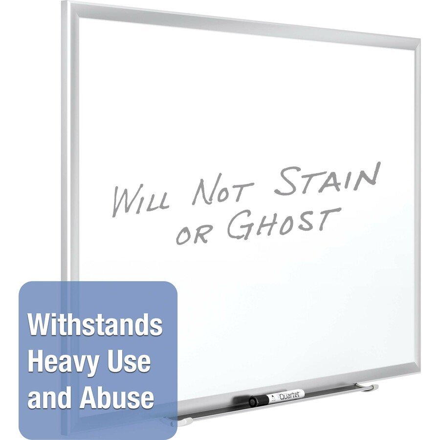 Marketing Information:Built to last, porcelain marker board features a magnetic surface that will not stain or ghost and a satin finish anodized frame. Durable porcelain will not scratch or dent with heavy use. Mounting system makes hanging simple and allows horizontal or vertical positioning. Marker tray can be attached with horizontal installation only. Marker board includes four Quartet dry-erase markers.
