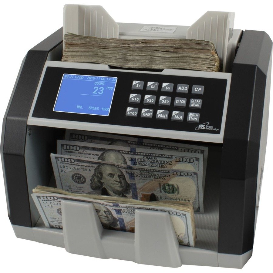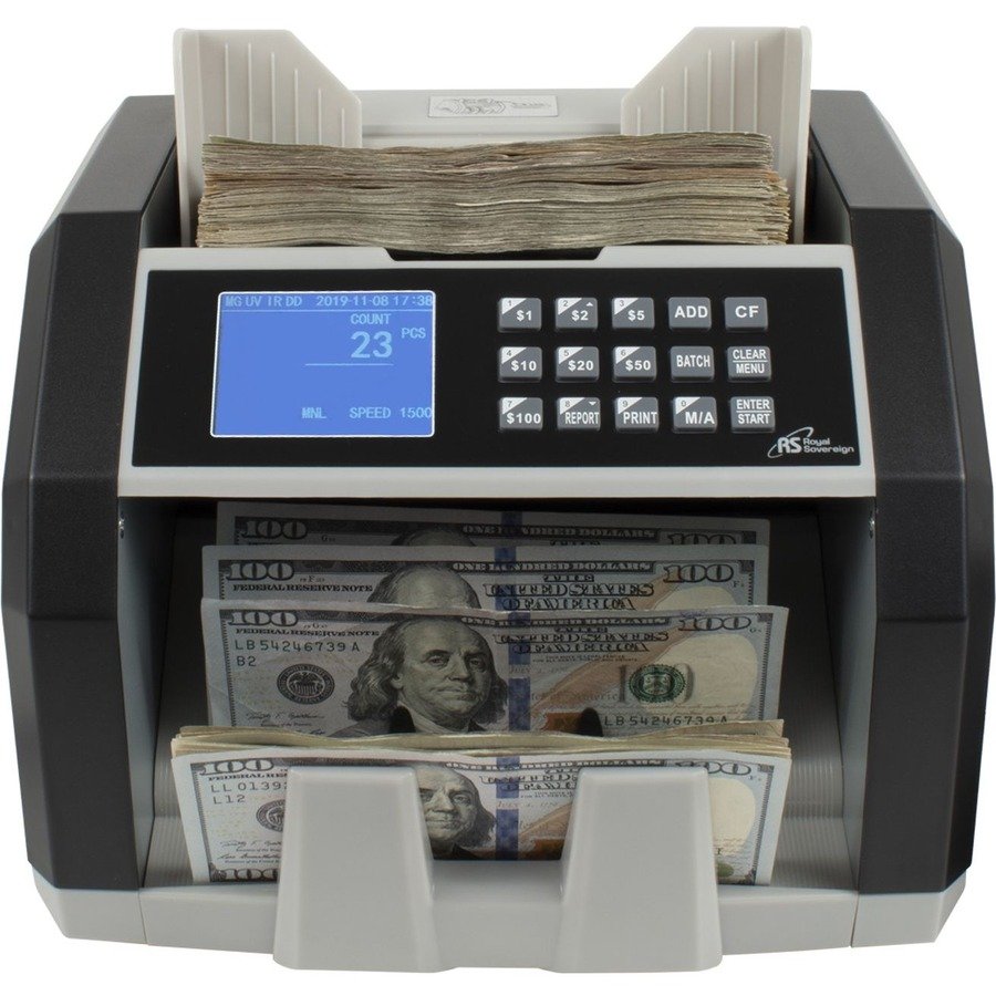 Marketing Information:Front-loading bill counter features a high-speed design to help you quickly find the total amount of cash at hand. Three-phase counterfeit detection ensures you are notified of counterfeit bills to prevent costly errors. Easy-to-use design allows you to accurately determine the total amount of large batches of bills. Digital display shows sharp, crisp digits to easily see amounts and help prevent reading errors.