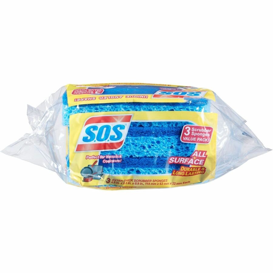 S.O.S All Surface Scrubber Sponge is dual-sided for cleaning both heavily soiled and delicate surfaces. It’s durable and long-lasting for everyday use with the scrubbing power on one side to cut through tough messes and a soft, absorbent cellulose sponge on the other to clean delicate surfaces including nonstick cookware, marble, ceramic and tile. The all-surface sponge features an easy-to-hold shape that allows you to clean hard-to-reach crevices faster and easier. This sponge is also dishwasher-safe so you can toss it in the top rack to conveniently sanitize. It is ideal for use in restaurants, cafeterias, hotels, breakrooms and other commercial facilities. Cleaning is quick and easy with S.O.S.