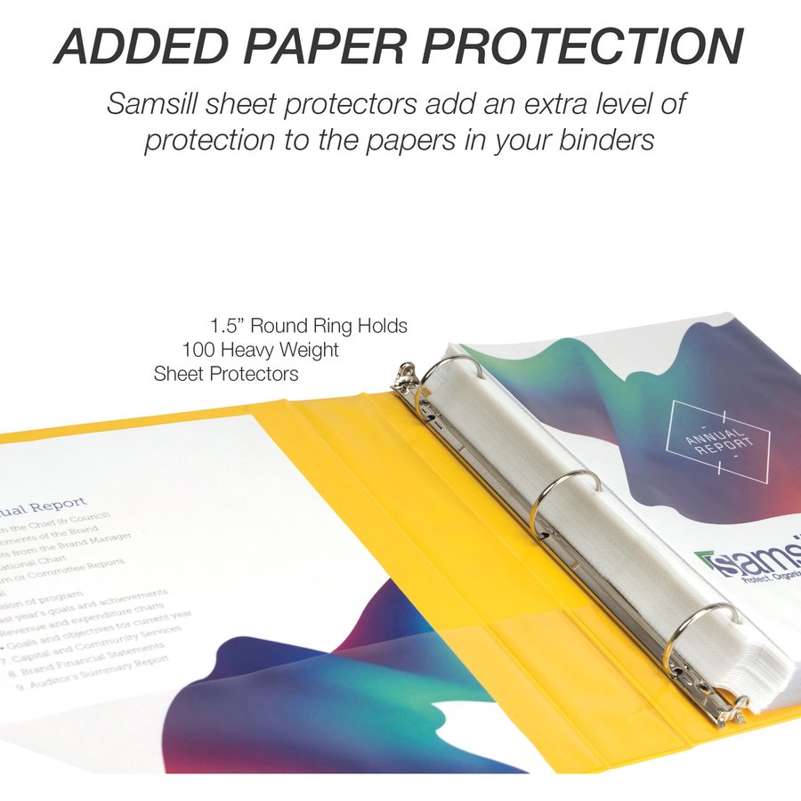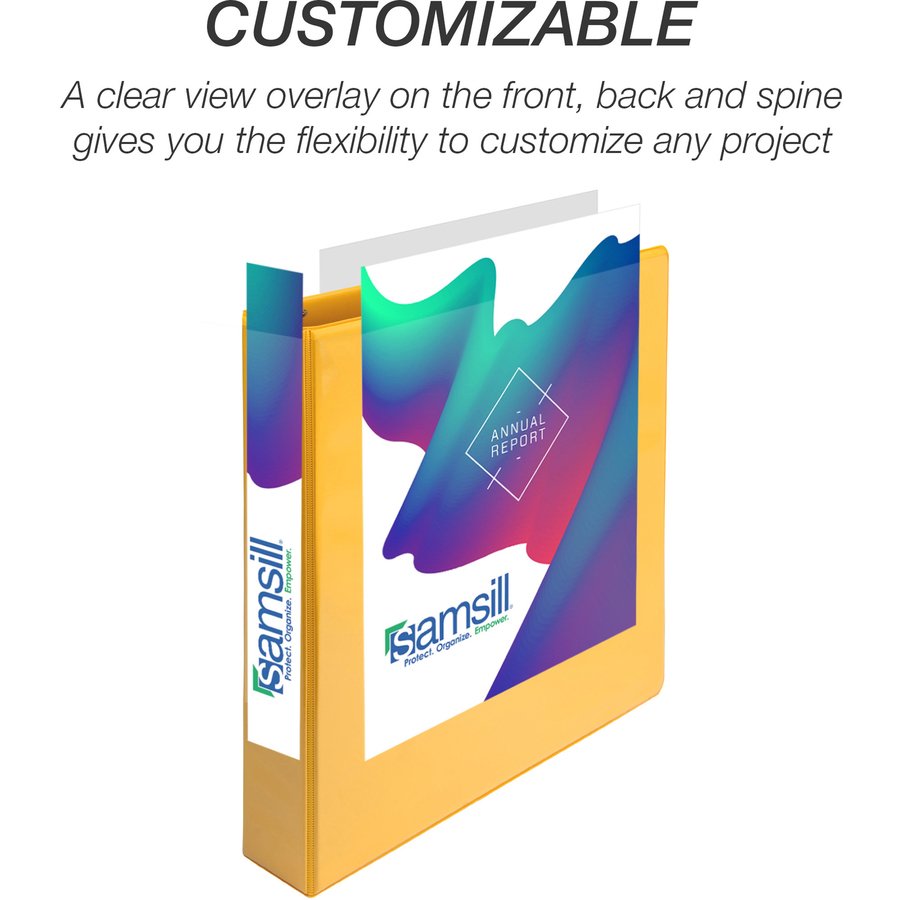 Value binder features a clear overlay on the front, back and spine to give you full control and flexibility over customizing presentations, organizational projects, office reports, class projects and more. 1.5″ round rings with double boosters can hold up to 325 sheets of letter-size paper with ease. Rings are mounted on the back lid to let pages lie flat and prevent wear-and-tear of the documents. Sleek, clean appearance with a no-rivet spine provides a professional look for your important documents. It also includes two clear, inside horizontal pockets for additional storage and organization of loose documents and unpunched papers. Each pocket provides enough space to hold notes, photos, business cards or full-size pages.