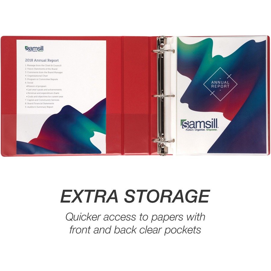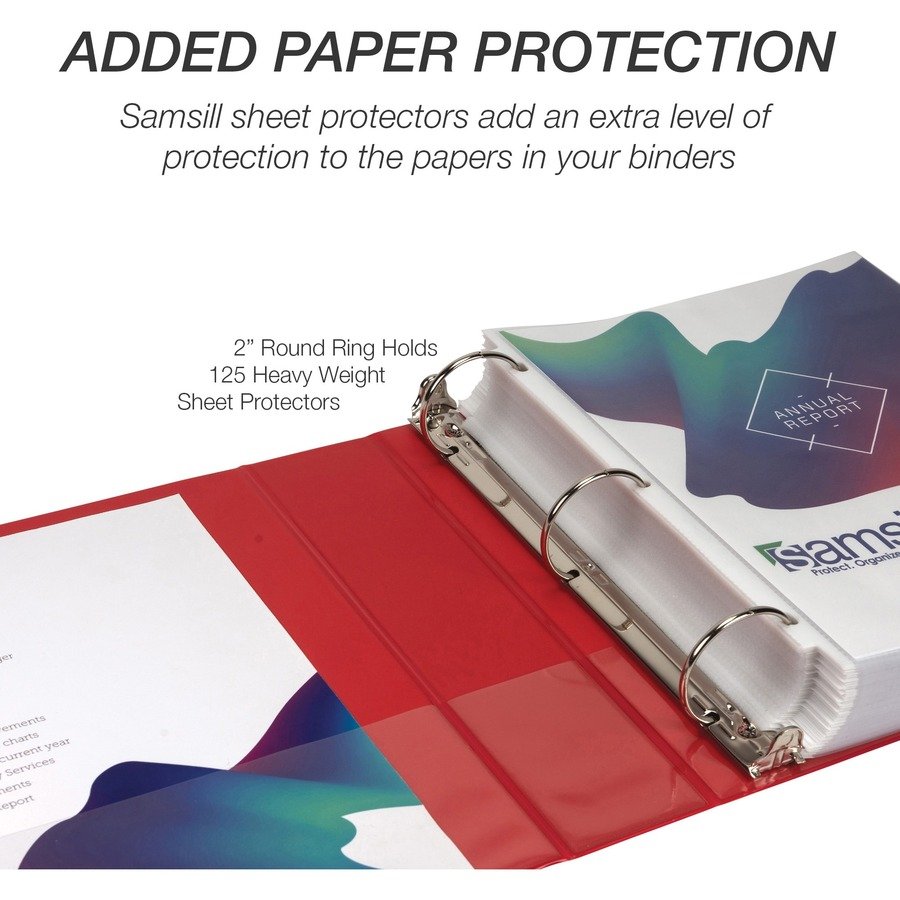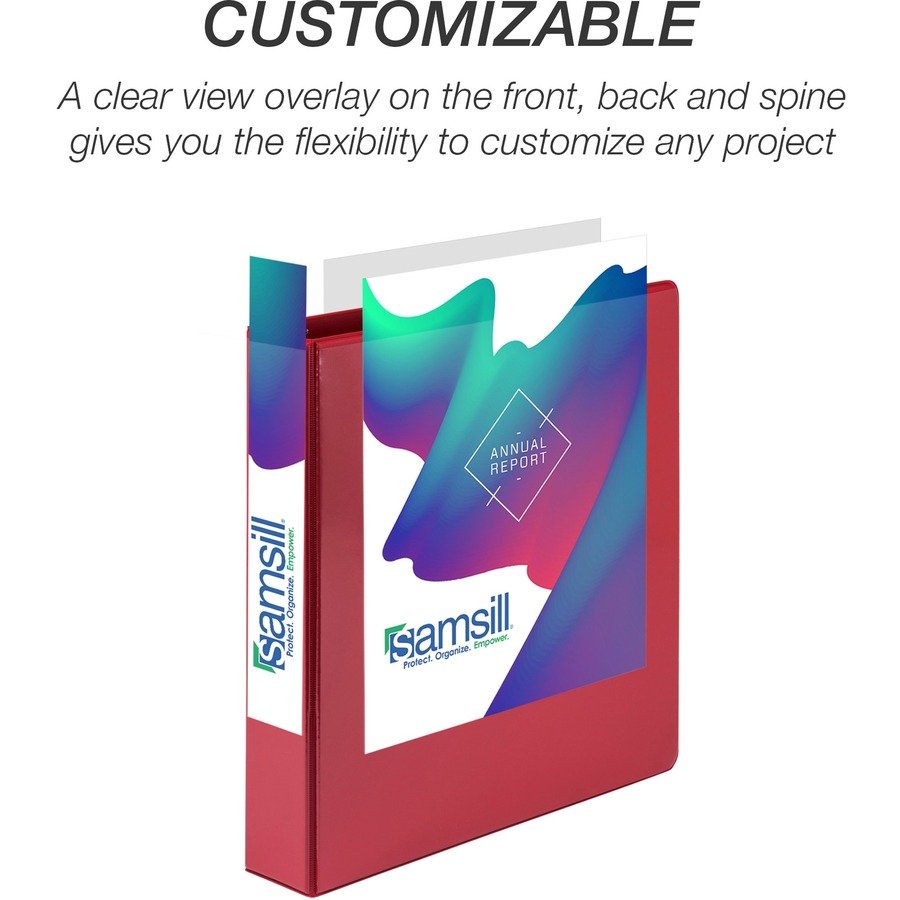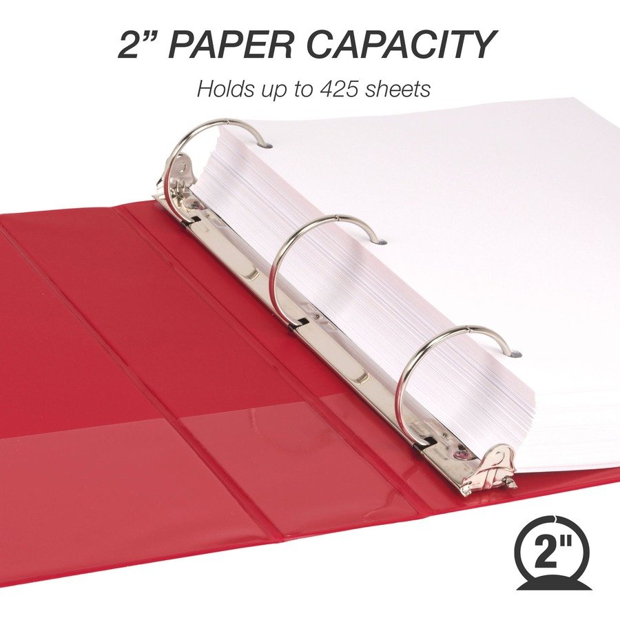Value binder features a clear overlay on the front, back and spine to give you full control and flexibility over customizing presentations, organizational projects, office reports, class projects and more. Cover is made from polypropylene for increased durability when compared to PVC. Polypropylene is also nonstick to prevent the transfer of ink or lifting copy when materials are inserted in the cover or placed inside. This makes it easy to reuse and update the covers and spines as often as you’d like. 2″ round rings with double boosters can hold up to 425 letter-size sheets with ease. Rings are mounted on the back lid to let pages lie flat and prevent wear-and-tear of the documents. Sleek, clean appearance with a no-rivet spine provides a professional look for your important documents.