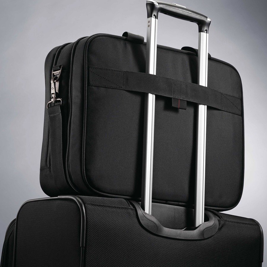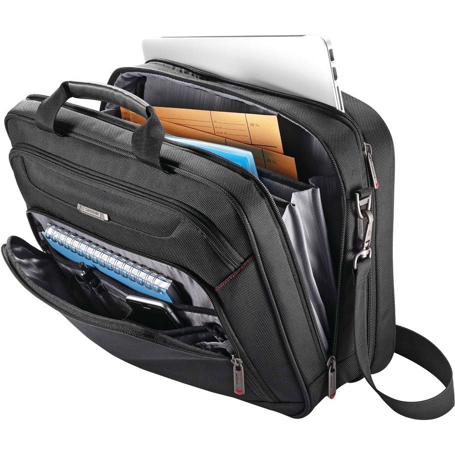 The Xenon 3.0 Laptop Bag features a timeless, classic design with an assortment of options to organize your personal electronics. 1680 denier ballistic, polyurethane material stays strong through everyday use. Checkpoint-friendly opening provides quick access to your tablet or stylus. Front panel has two, large organization pockets with a tricot-lined tablet sleeve. Padded, textured handles are wrapped in vinyl for added strength and comfort. SmartSleeve allows you to attach the bag to the upright handles of your luggage for consolidated travel. Laptop bag holds up to 15.6″ laptops.