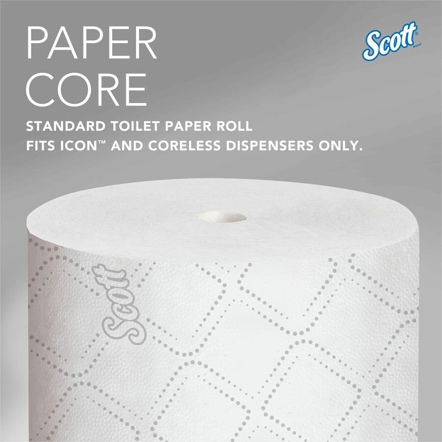 Marketing Information:Scott Pro provides state-of-the-art solutions to maximize productivity with a nearly invisible paper core for better roll utilization. Two-ply bathroom tissue offers 10 percent more sheets than the industry standard for high-capacity, standard-roll bathroom tissue and twice the length of a standard roll. Paper core is dispersible in water to waste less without disposing of a corrugated core. Towels are unmistakably Scott branded to provide a well-known restroom brand in your facility. Elevated Scott design is preferred 4 to 1 based upon a 2019 KCP Brand Differentiation Study. Scott Pro Paper Core Standard Roll Bathroom Tissue helps promote cleaning staff productivity while enhancing your facility’s image.