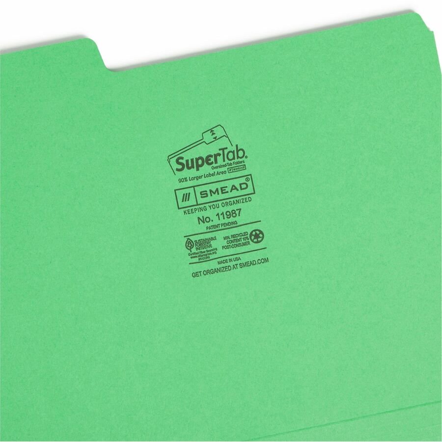 Marketing Information:Find critical files fast with SuperTab file folders. Get nearly double the labeling area of standard file folders so you can write larger or use more lines of description. These sturdy, durable file folders fit any vertical or lateral filing system. The SuperTab offers a 90 percent larger label area than tabs on standard folders for improved labeling. Your labels will be easy to see because you can use larger text or more lines of text. Extra-wide, 1/3-cut tabs are 7/8″ high. Letter-size folders are made of 11 point stock and scored for 3/4″ expansion. Assorted colors include blue, red, yellow and green.