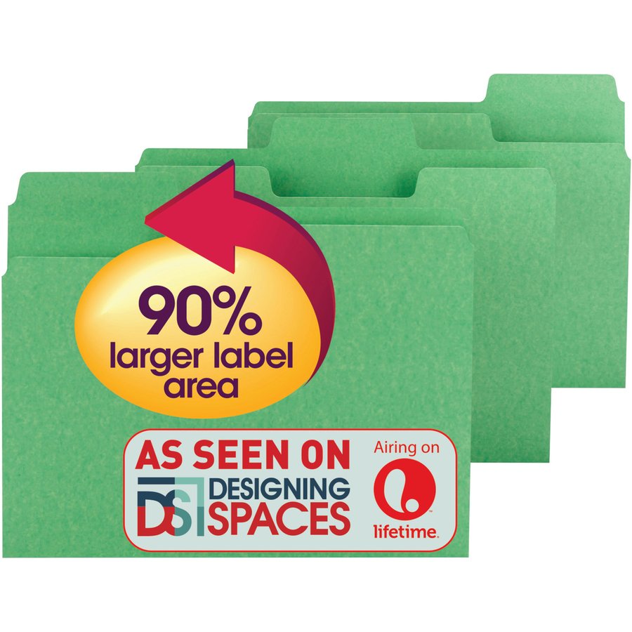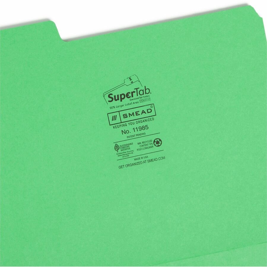 Marketing Information:Find critical files fast with SuperTab file folders. SuperTab folders are designed with 90 percent larger label area than standard folders for improved labeling. Labels are easier to see using larger text or more lines of text. Sturdy, single-ply tabs fit any vertical or lateral filing system. Folders feature 11 point stock, extra-wide 1/3-cut tabs and 7/8″ high tabs. Folders are scored for 3/4″ expansion.