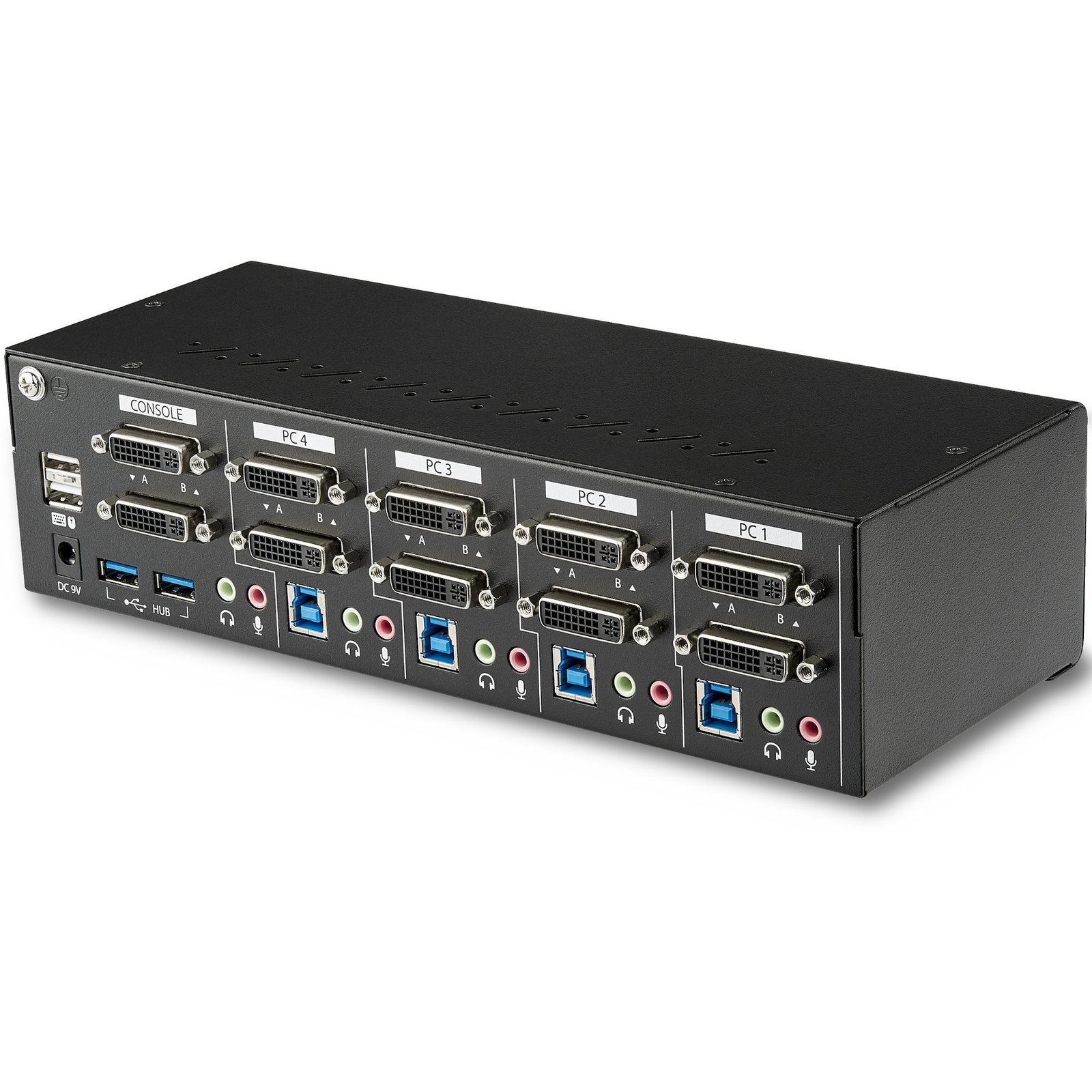• TECH SPECS: 4 Port KVM | Dual Screen | DVI Dual Link | 2048×1536 Analog | 2560×1600 or 1440p Digital | 2-Port USB 3.0 Hub | Hotkey, Push Button | OS Independent | Audio | Dual DVI + USB Console | TAA