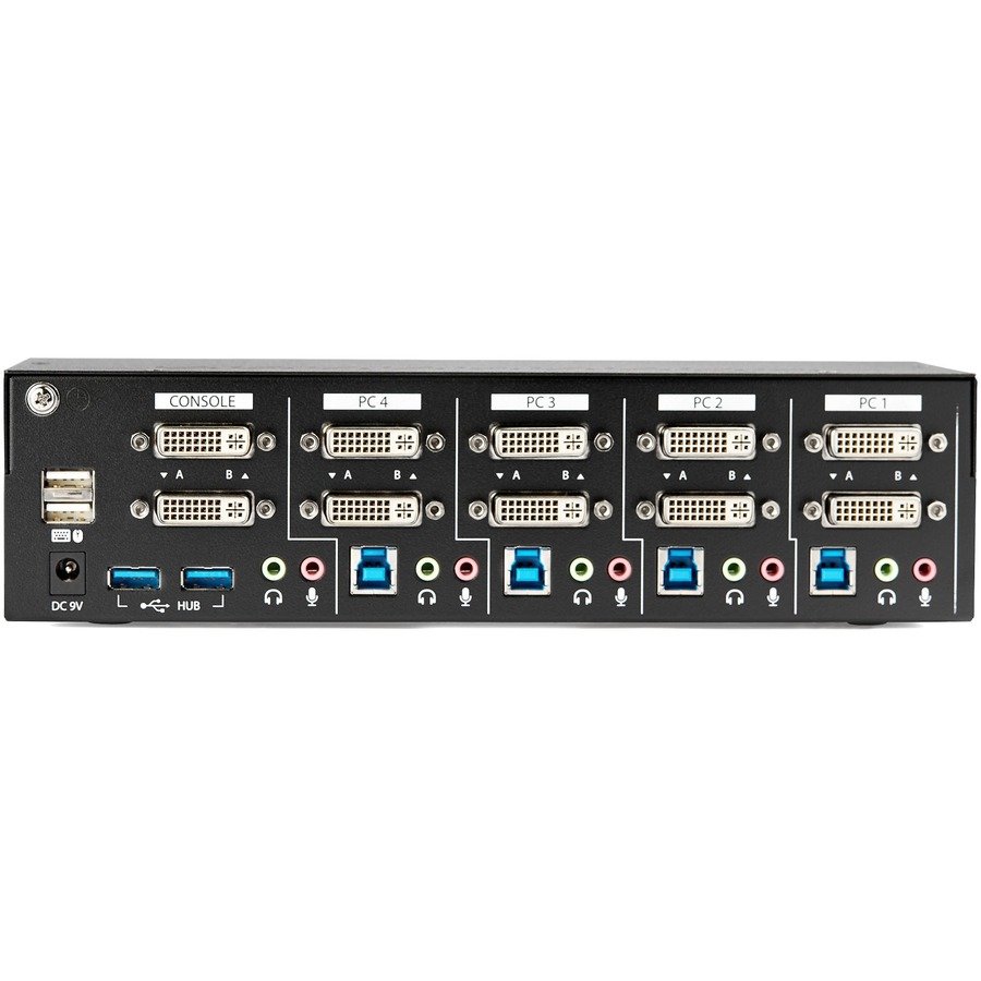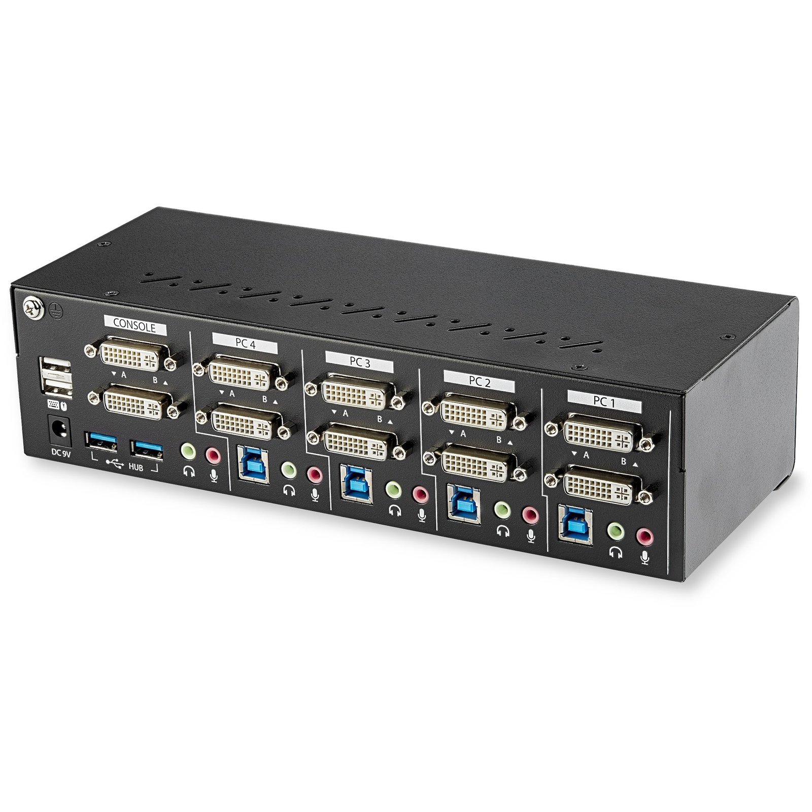 - IMPROVE EFFICIENCY: 4 Port Dual Monitor DVI KVM Switch with hotkey and manual switching, to access 4 workstations or servers with USB and DVI video from a single keyboard, monitor, and mouse
