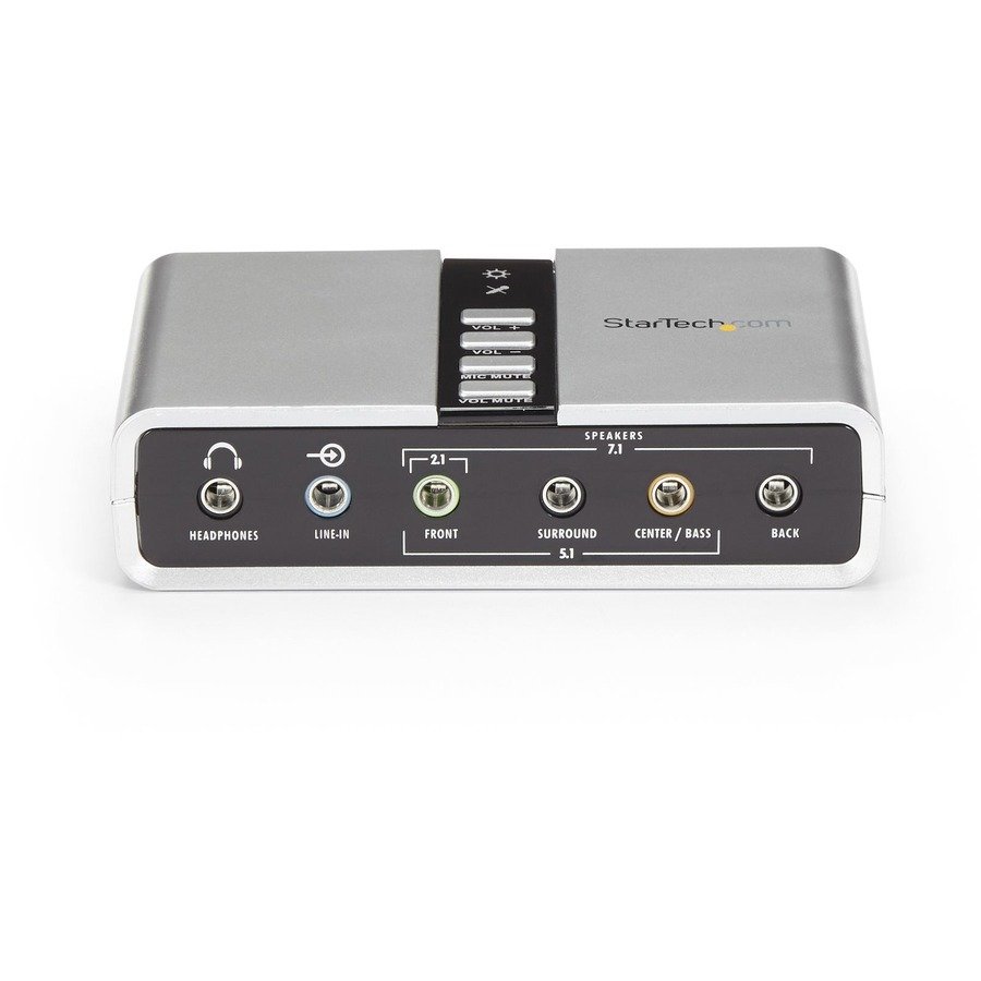 - Full 7.1 audio output support in a compact and portable external sound card